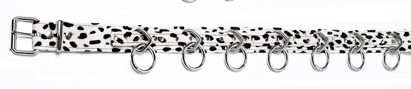FUZZY WHITE LEOPARD BELT, LARGE LOOP & RING