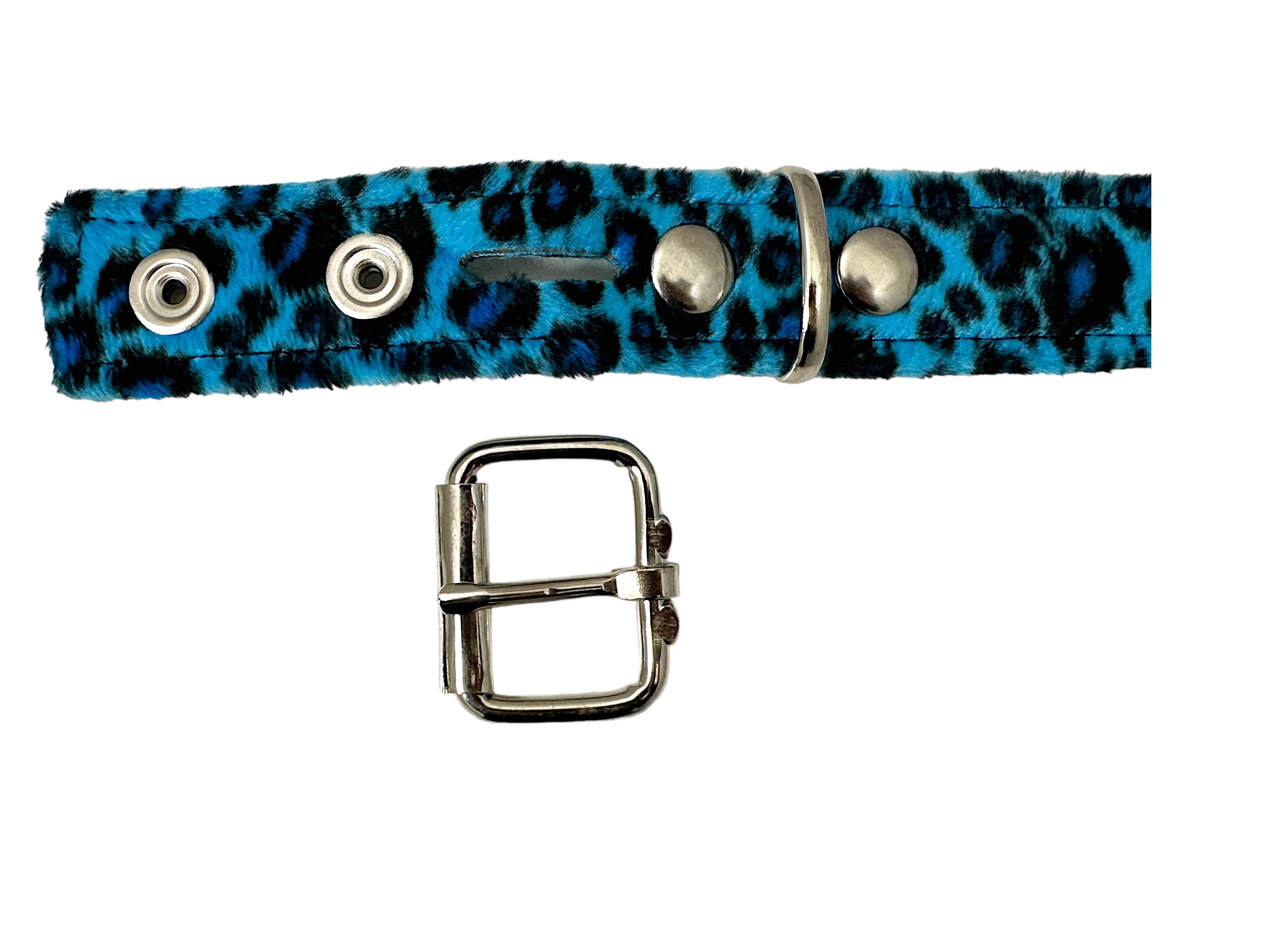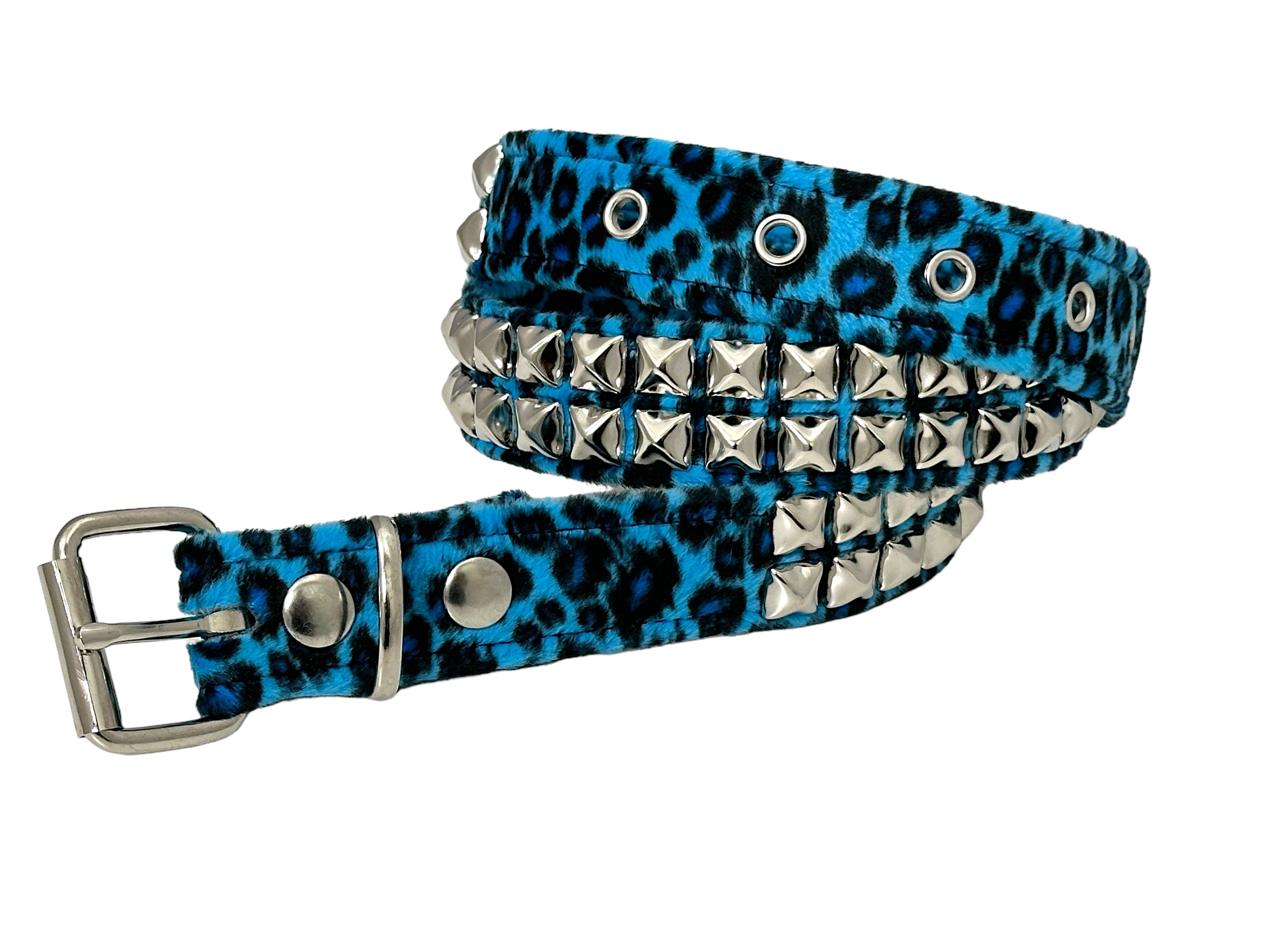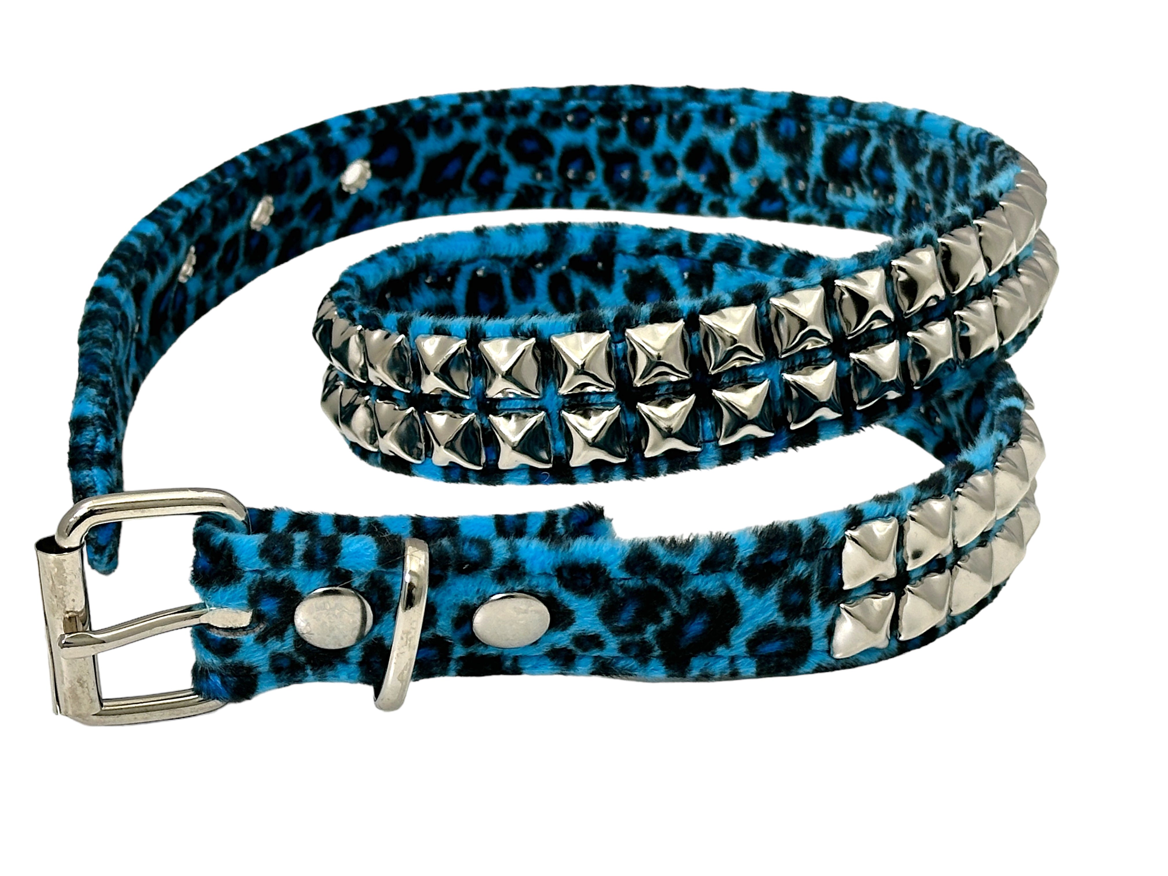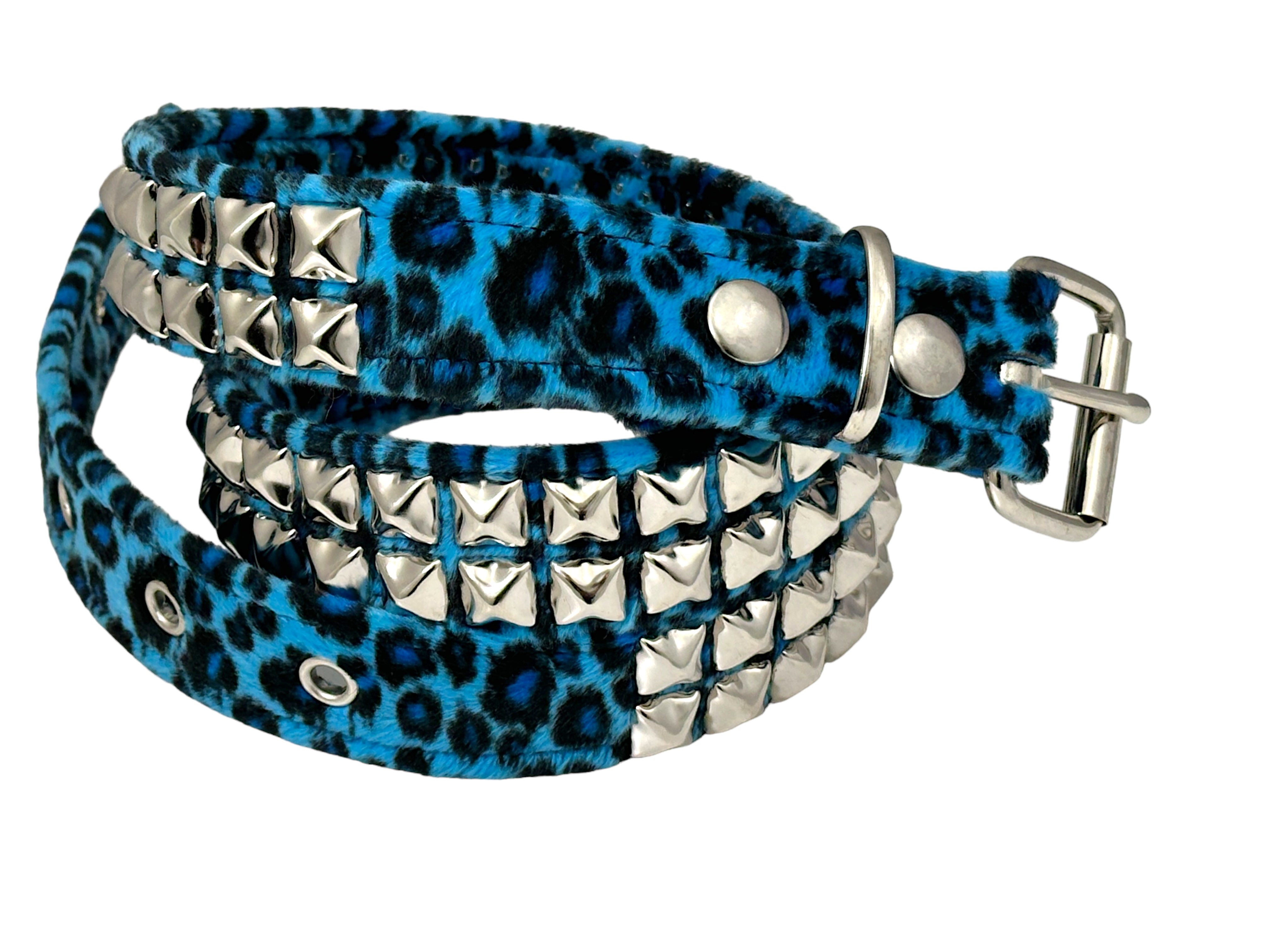 BLUE LEOPARD FUZZY 2 ROW PYRAMID STUDDED BELT