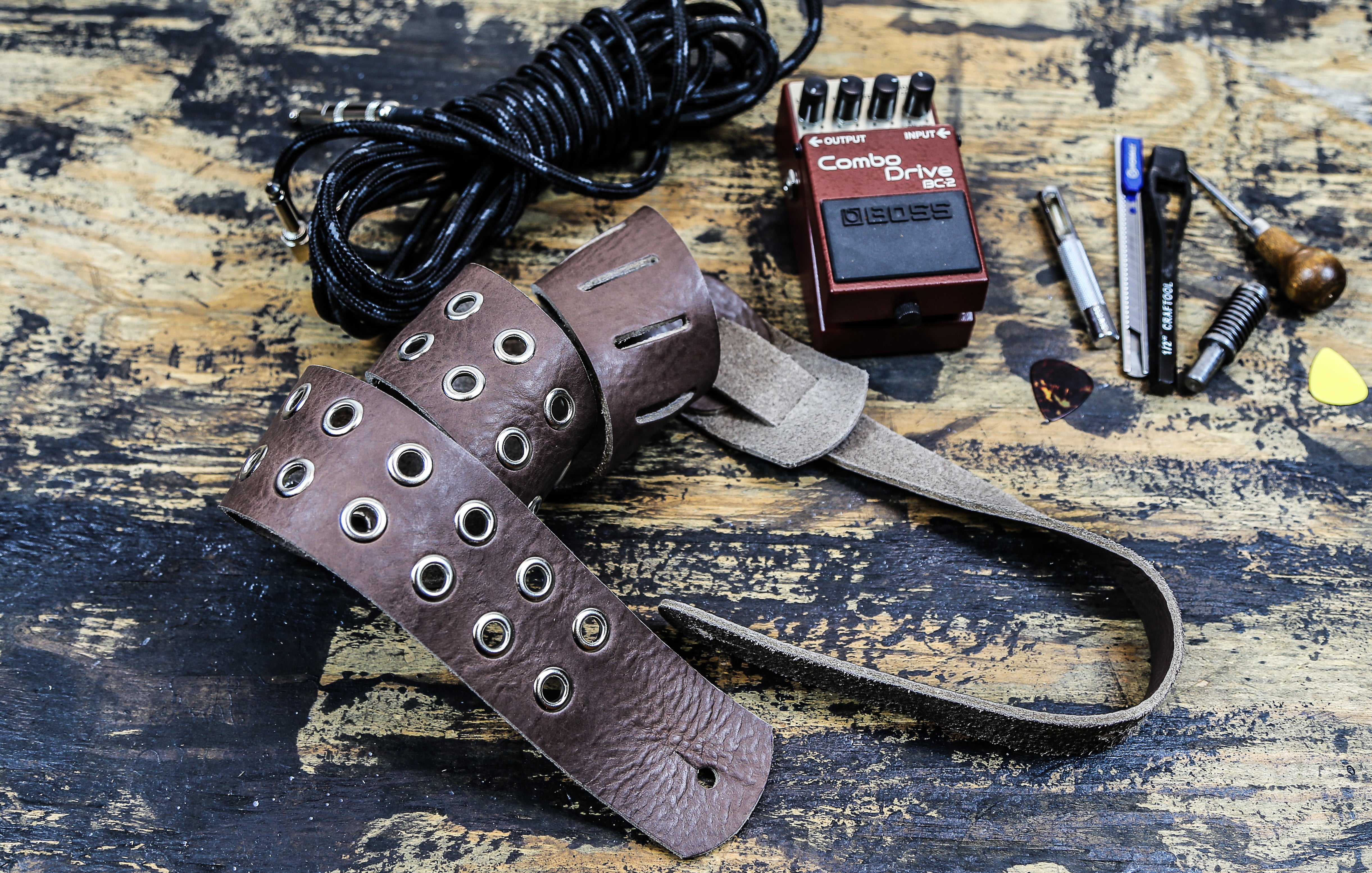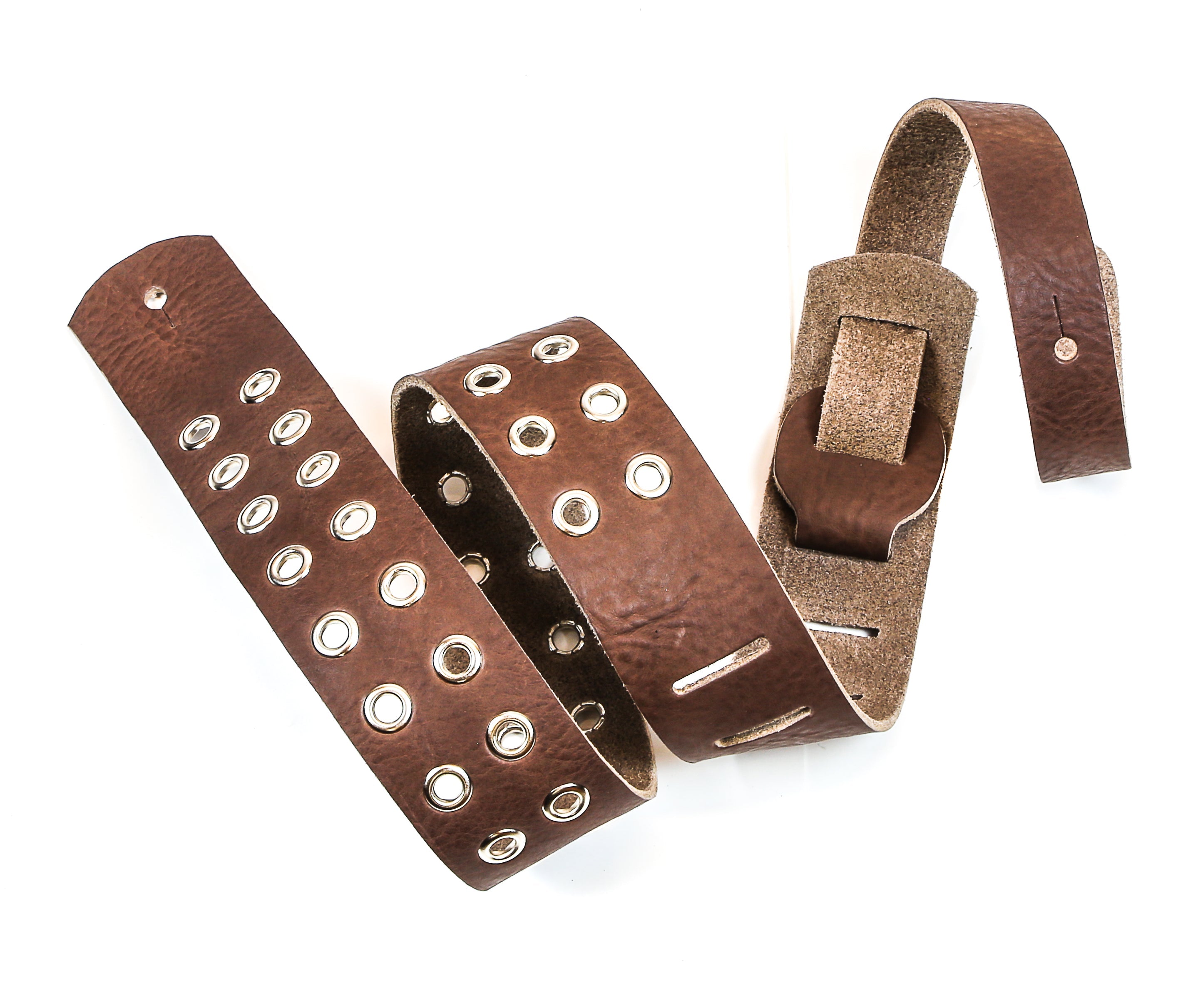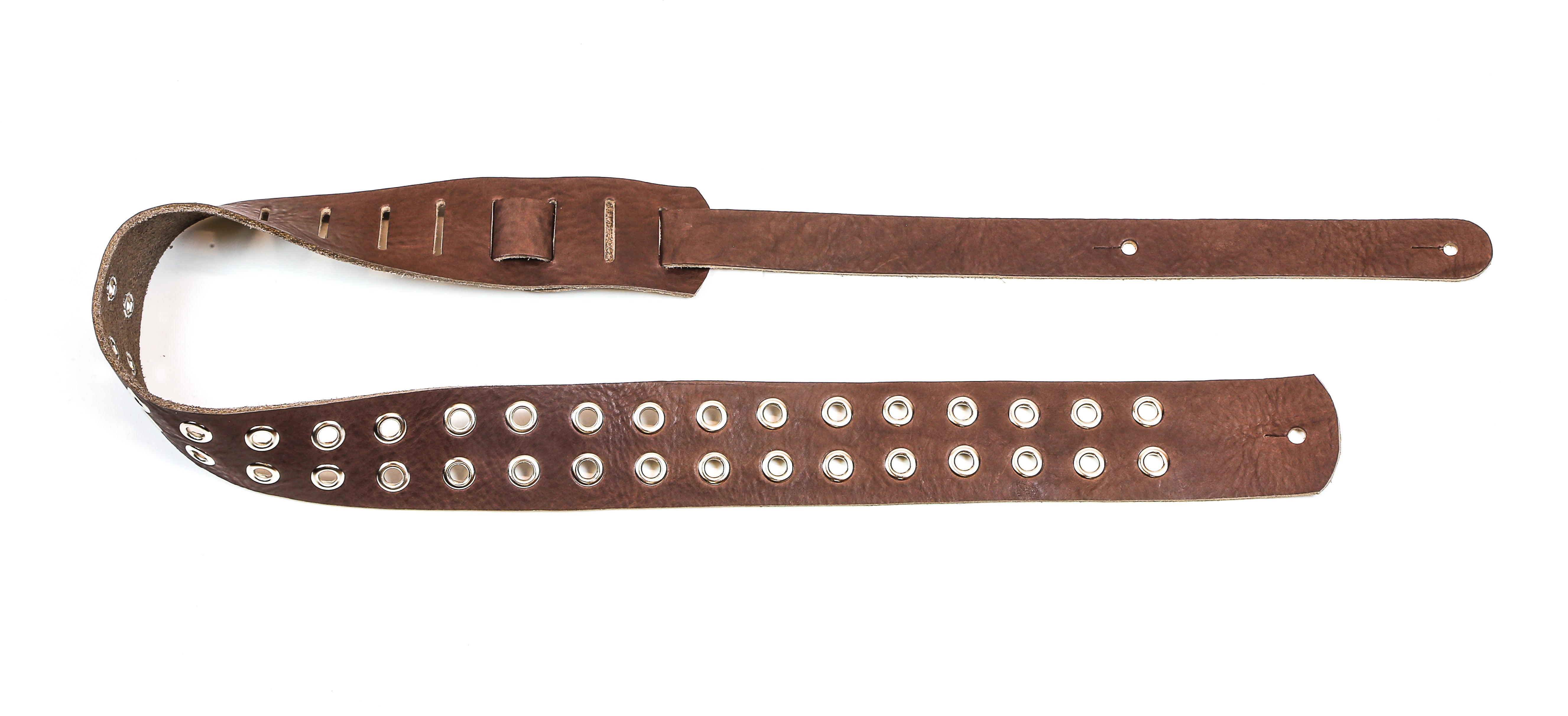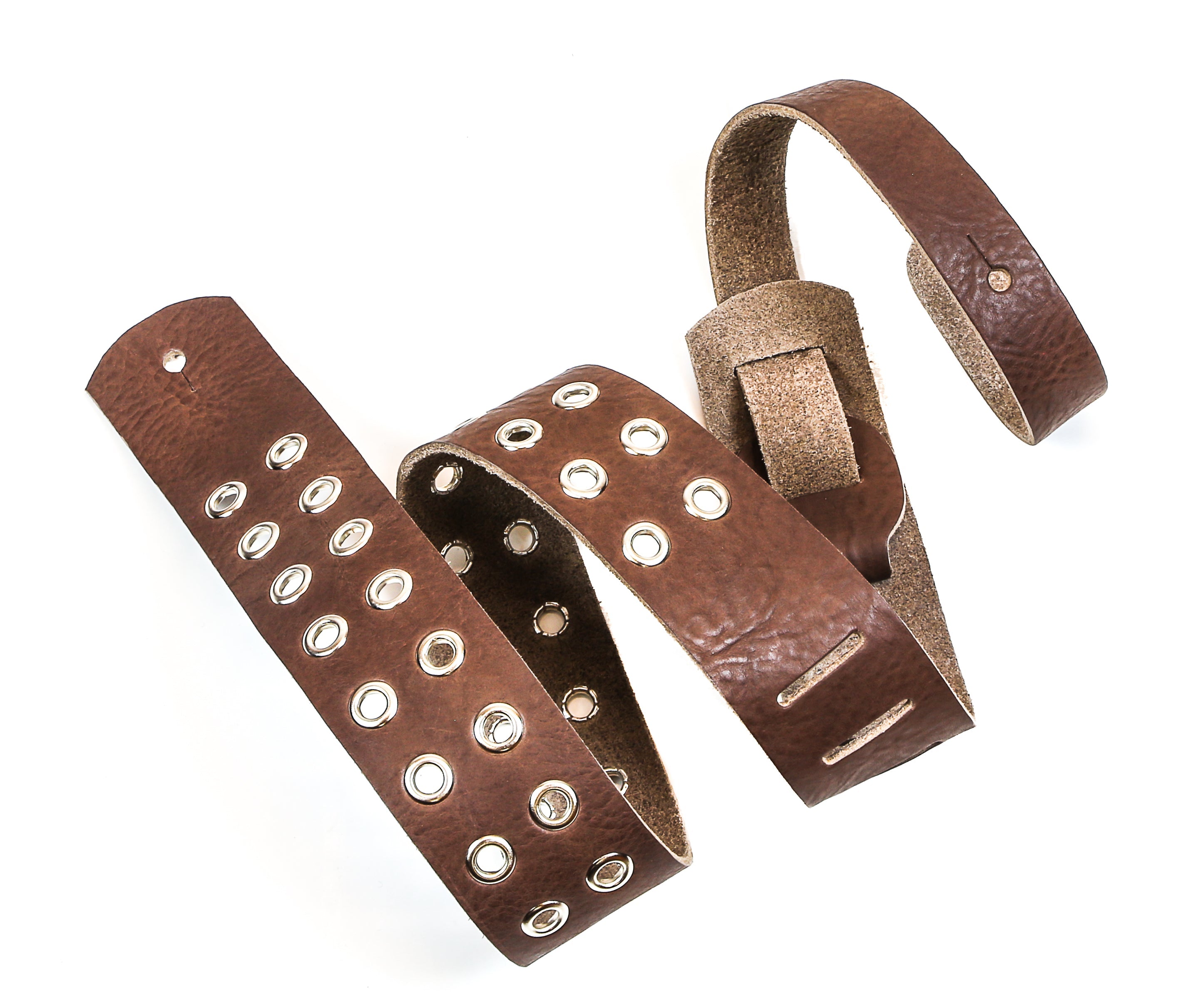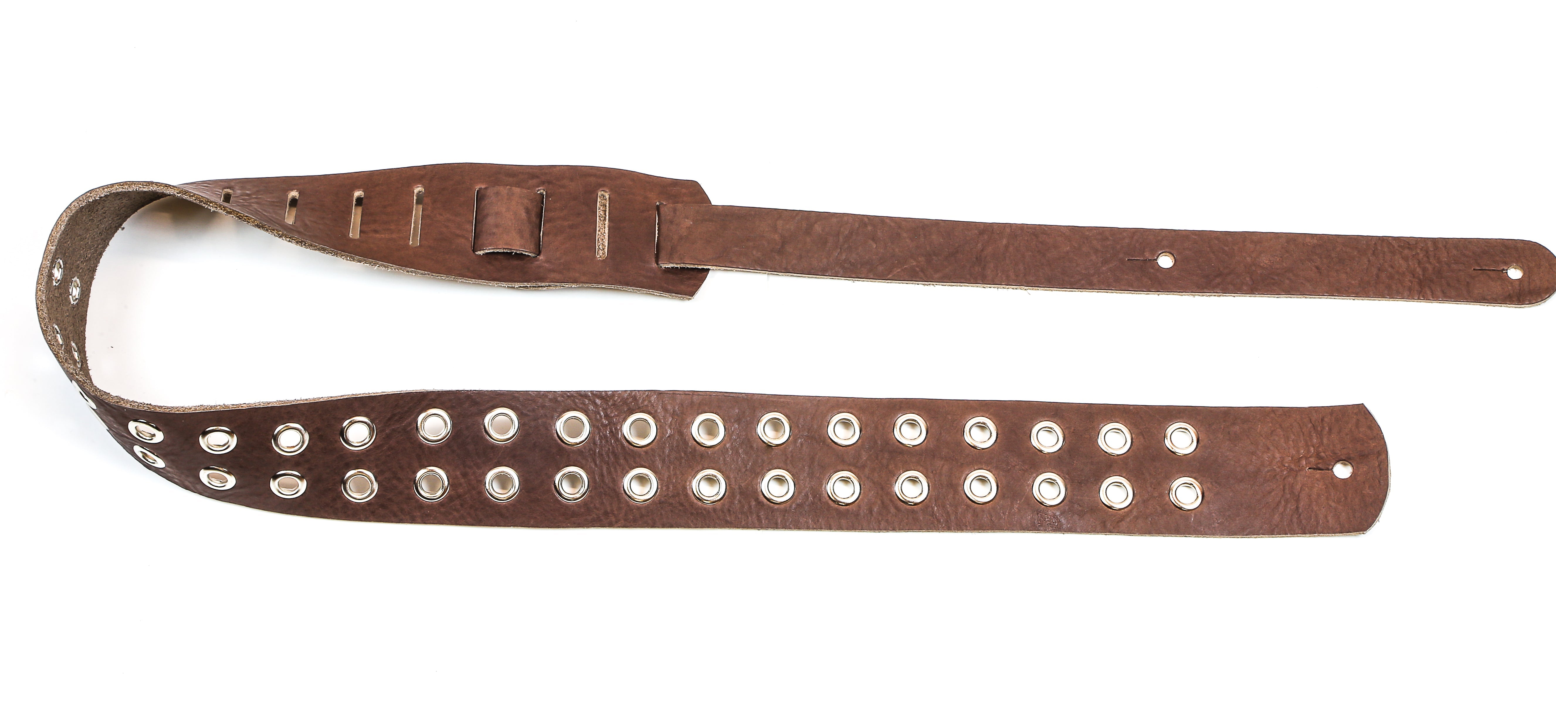 2 1/4" Wide Grommet Eyelet Double Hole Dark Brown Leather Classic Guitar Strap