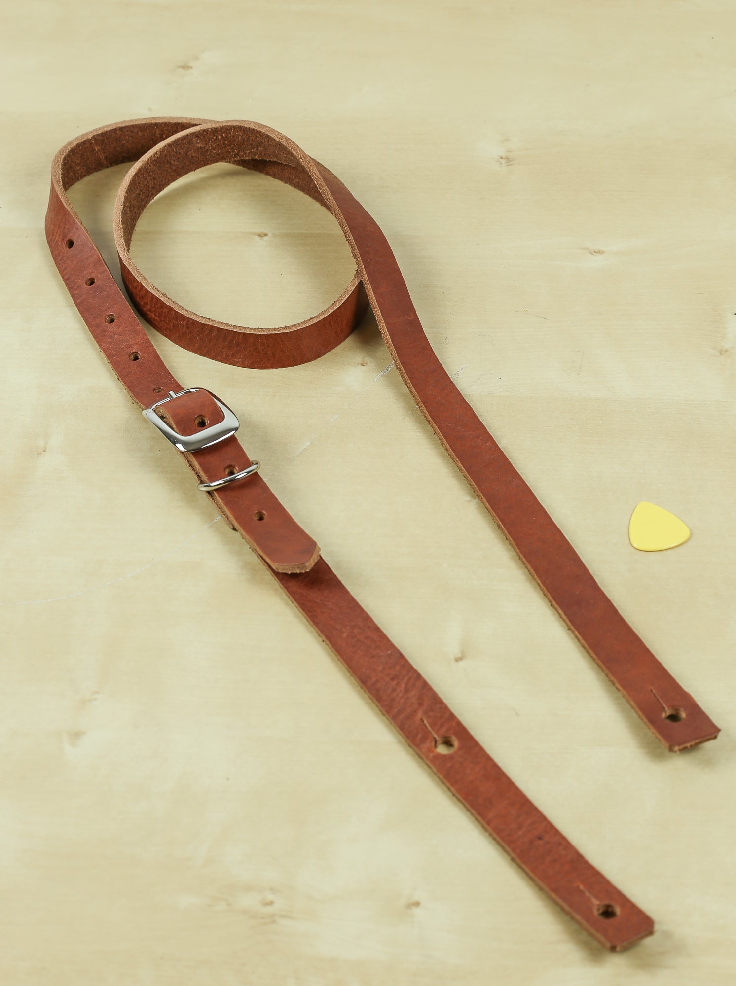 3/4" Wide Tan Saddle Leather Buckle Guitar Strap
