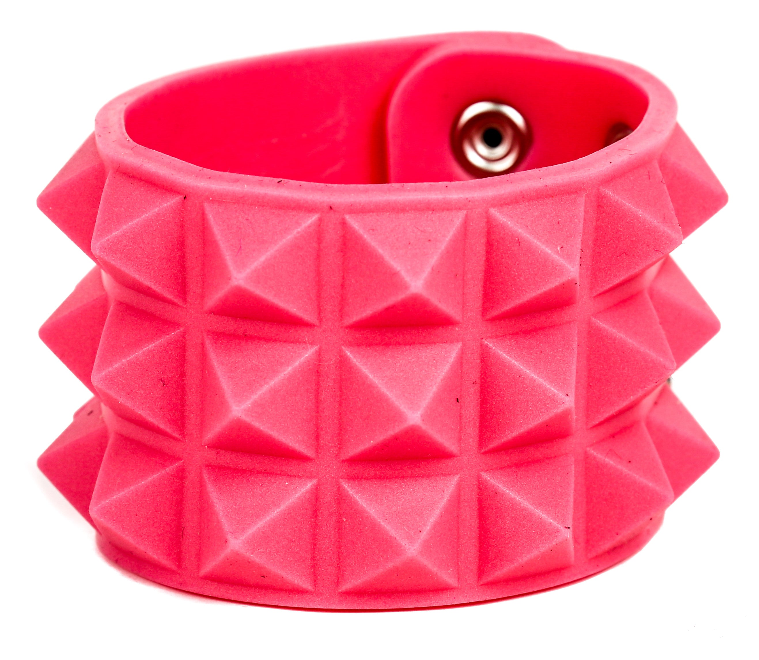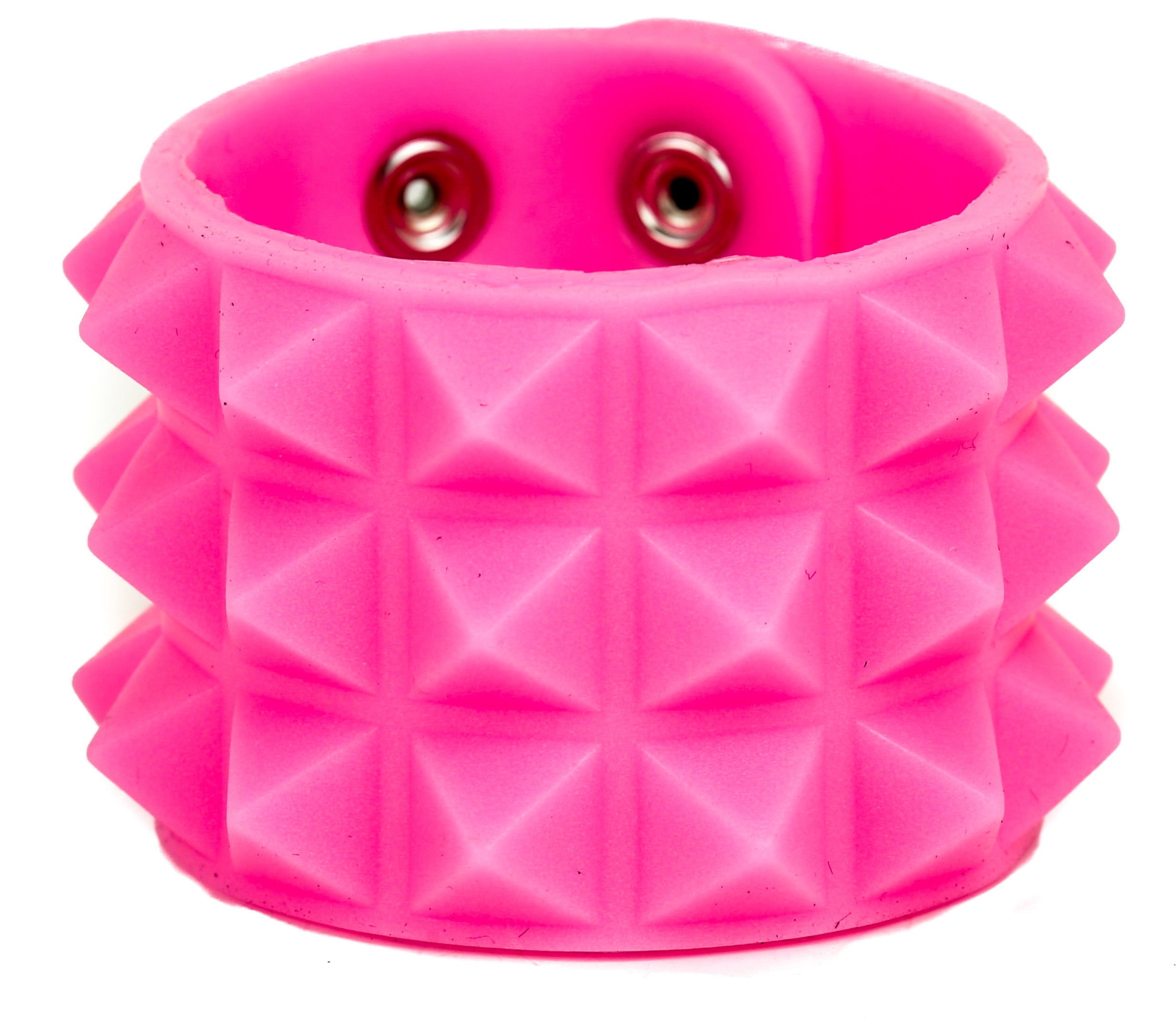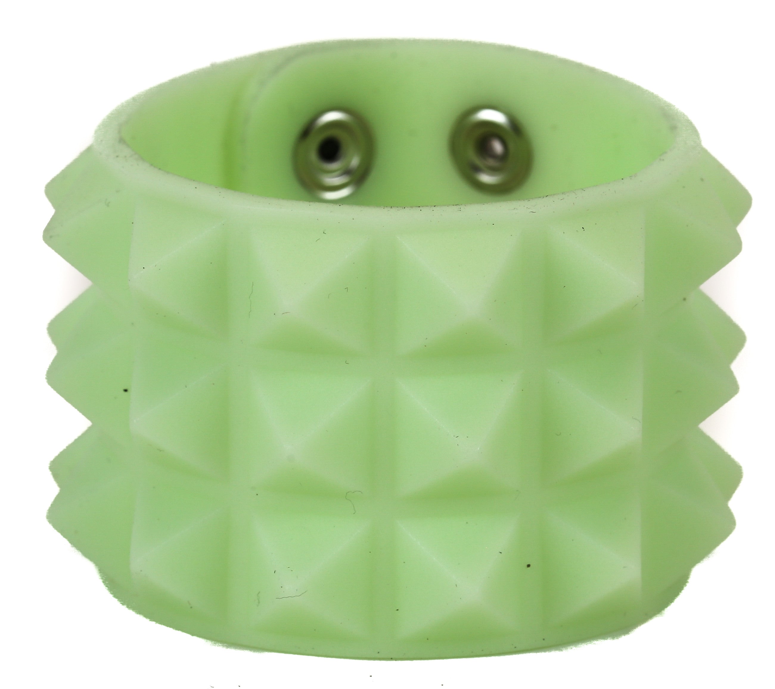 ASSORTED RUBBER, 3 ROW 1/2" PYRAMID BRACELET, GLOW IN THE DARK