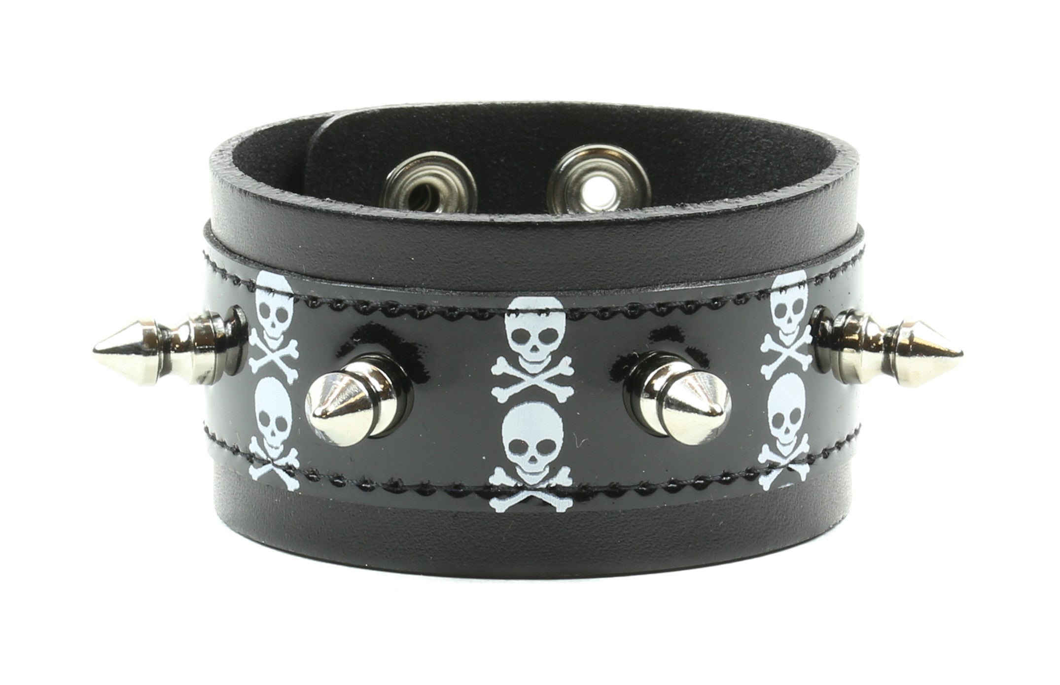 ASSORTED SKULL PRINTED BRACELET WITH SPIKES, 1 1/2" WIDE