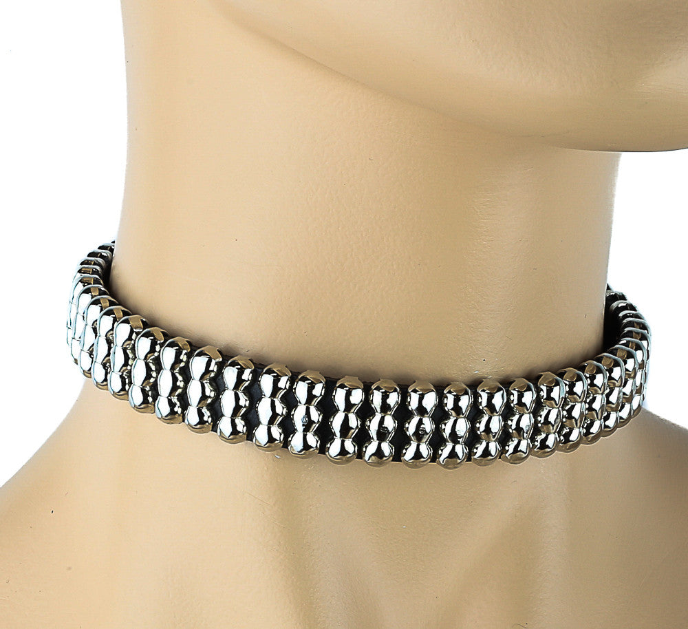 Triple Studded Black Leather Choker