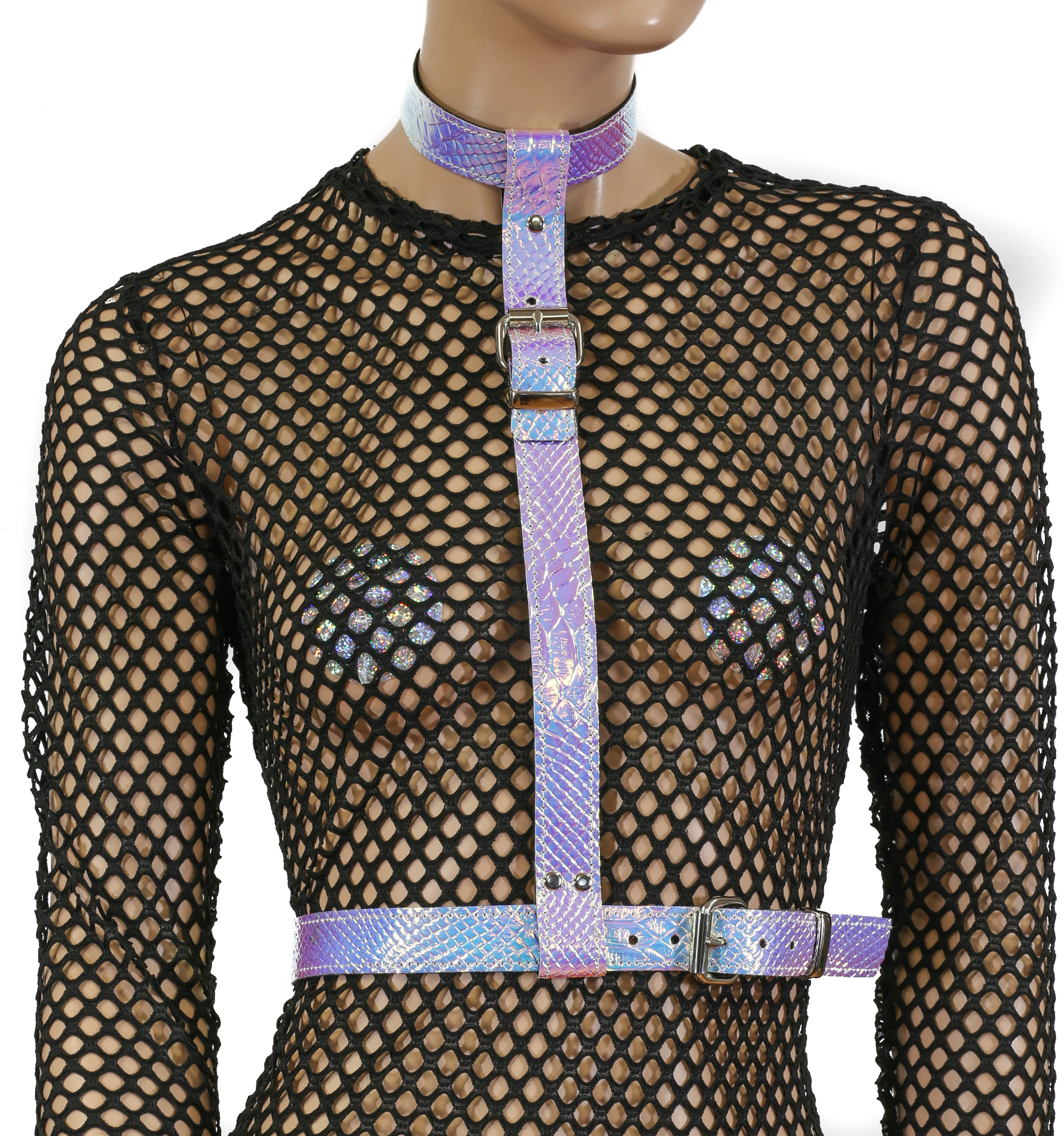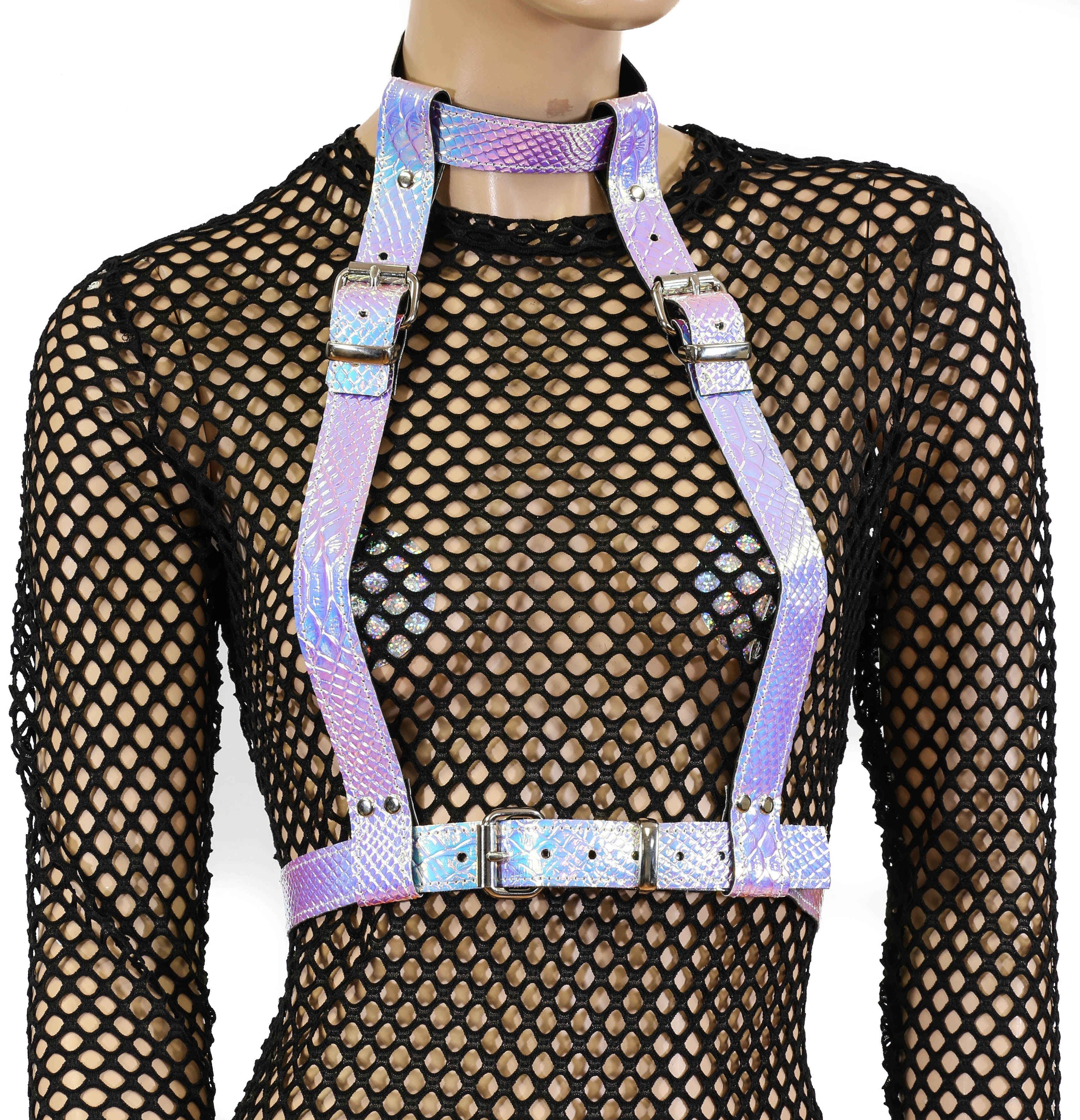 Snake Rainbow 3 Strap Suspender Style Vegan Leather Harness