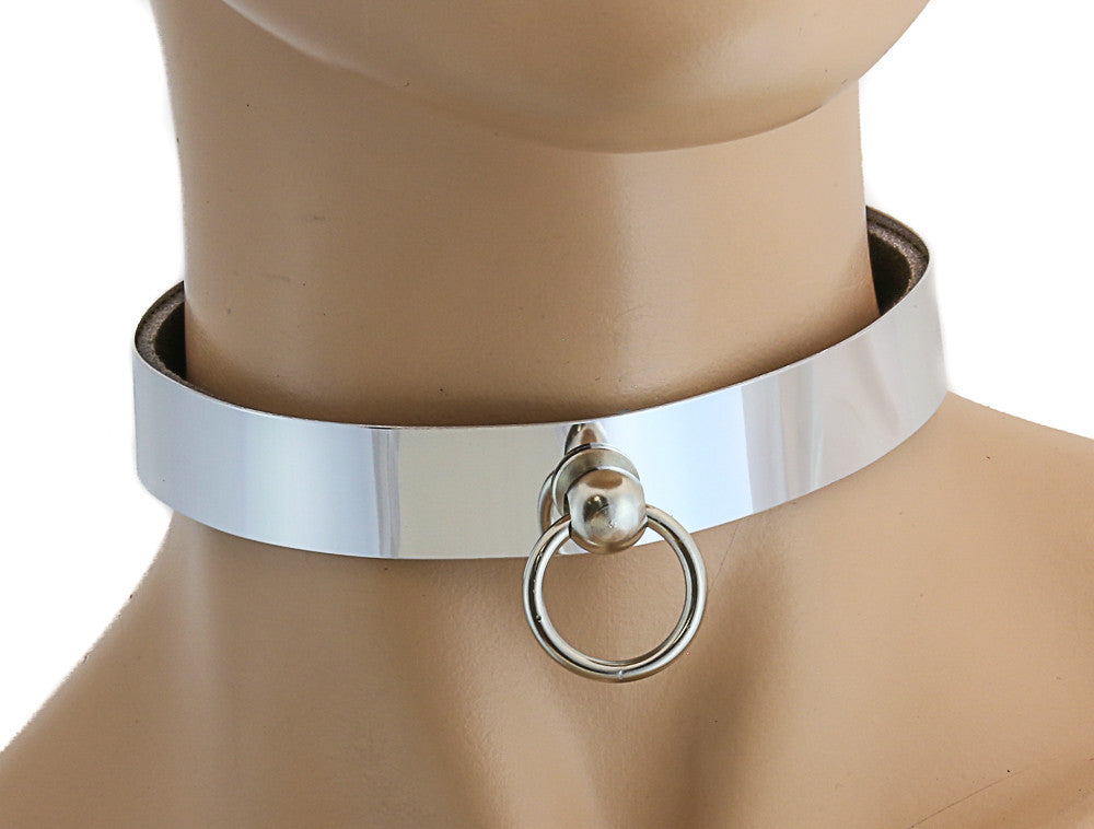 Reflective Plain White Choker with Small Ring