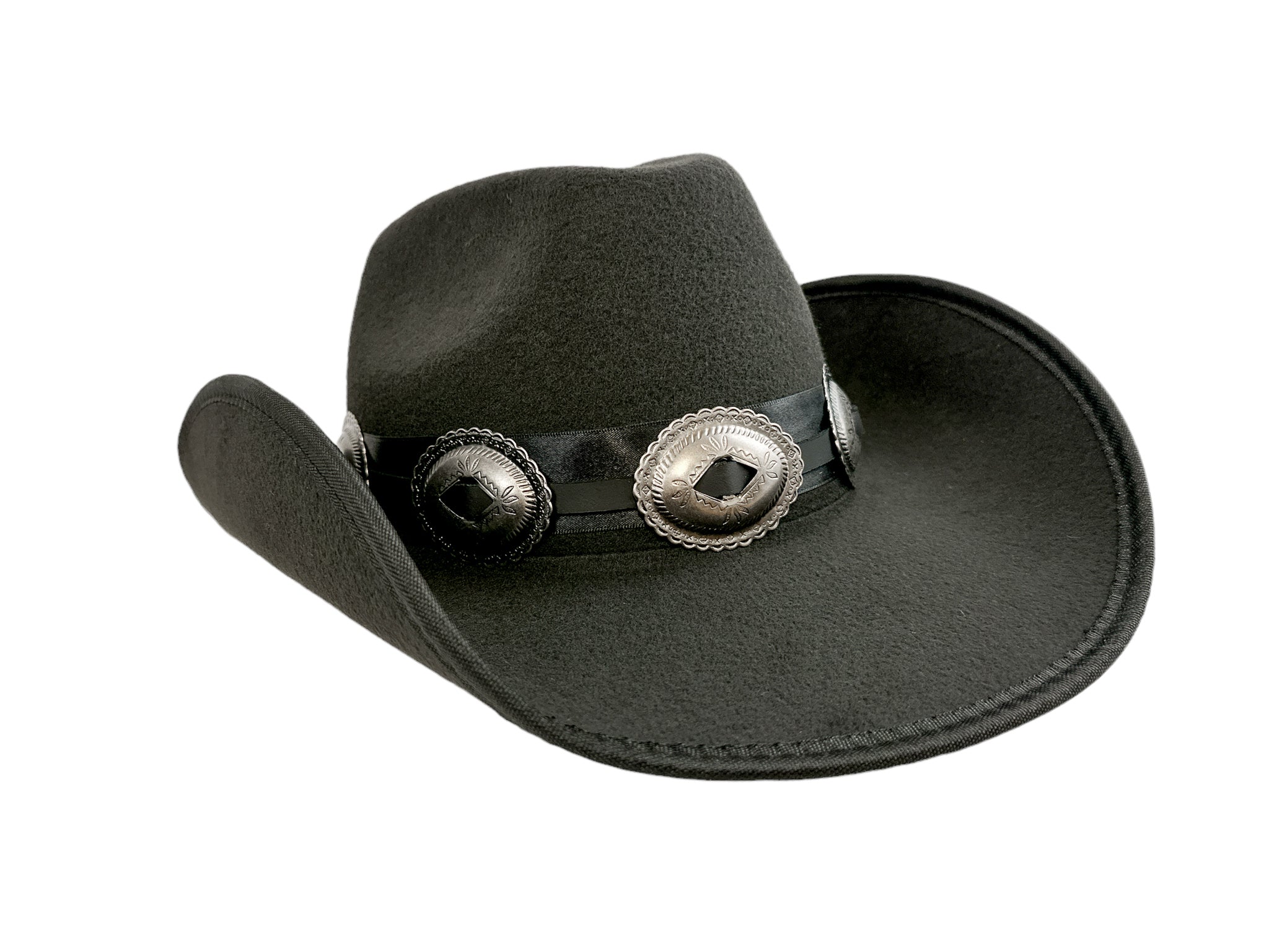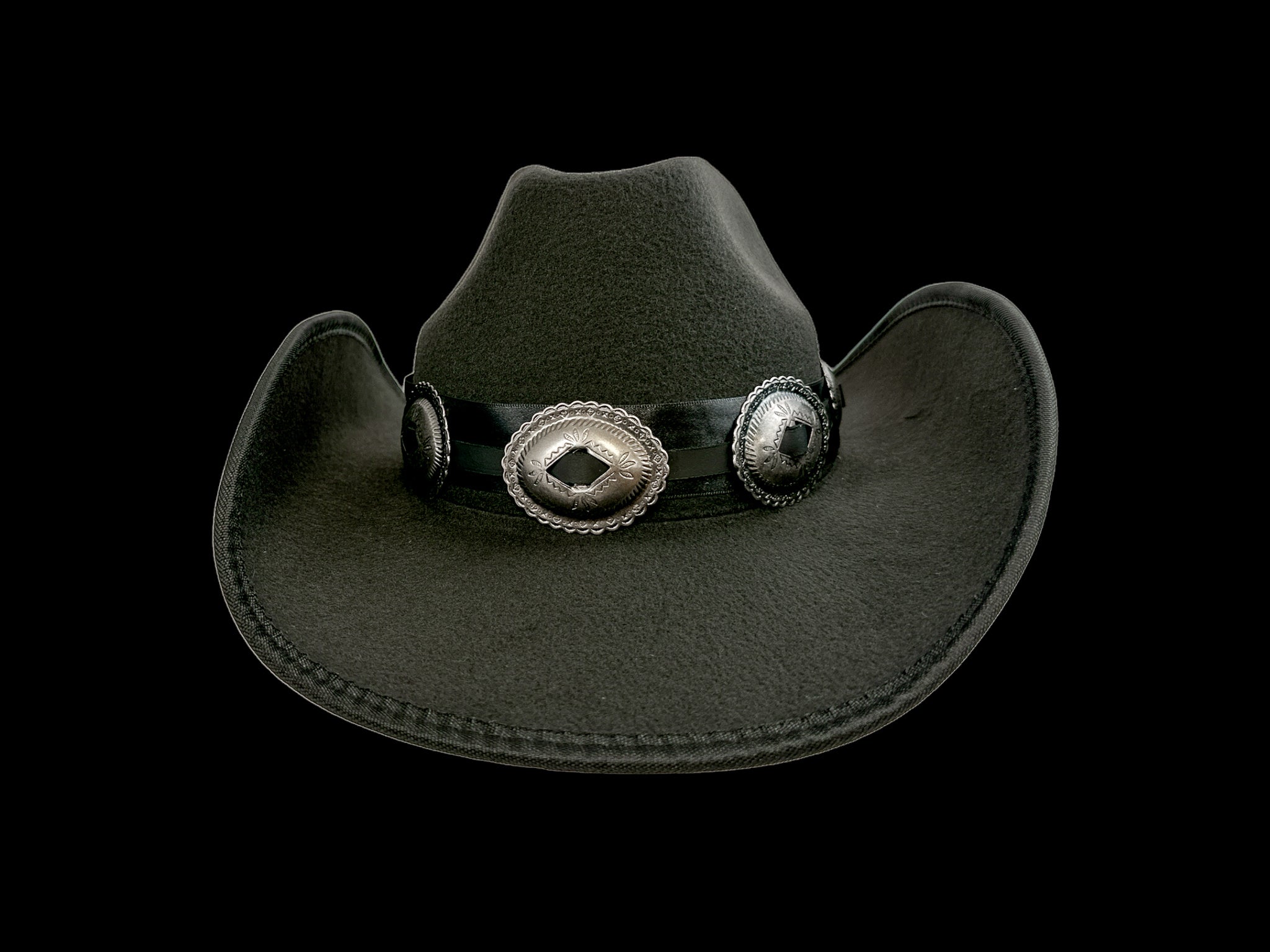 Cowboy Hat Wide Brim Antique Silver Oval Conch Western Leather Band