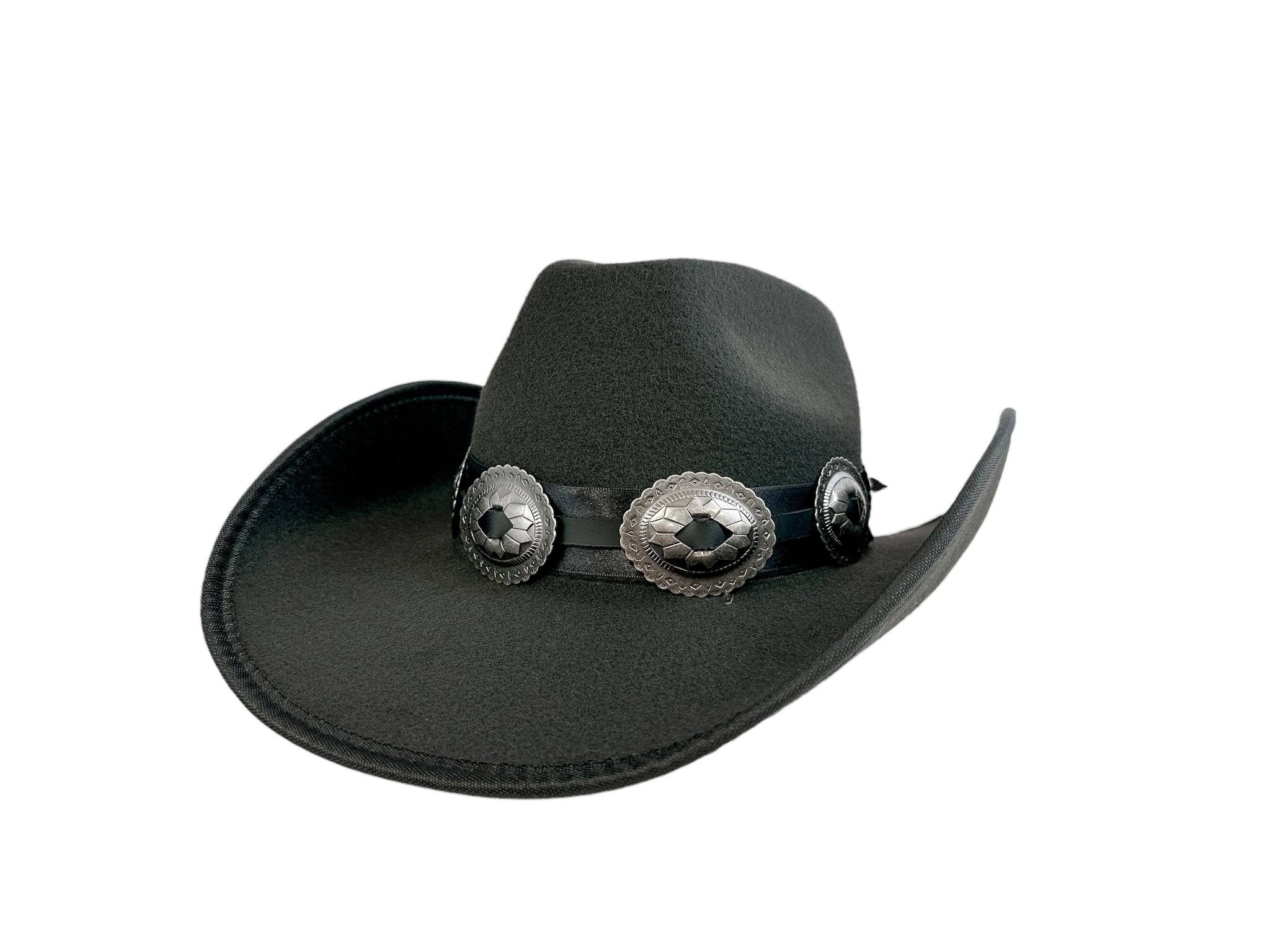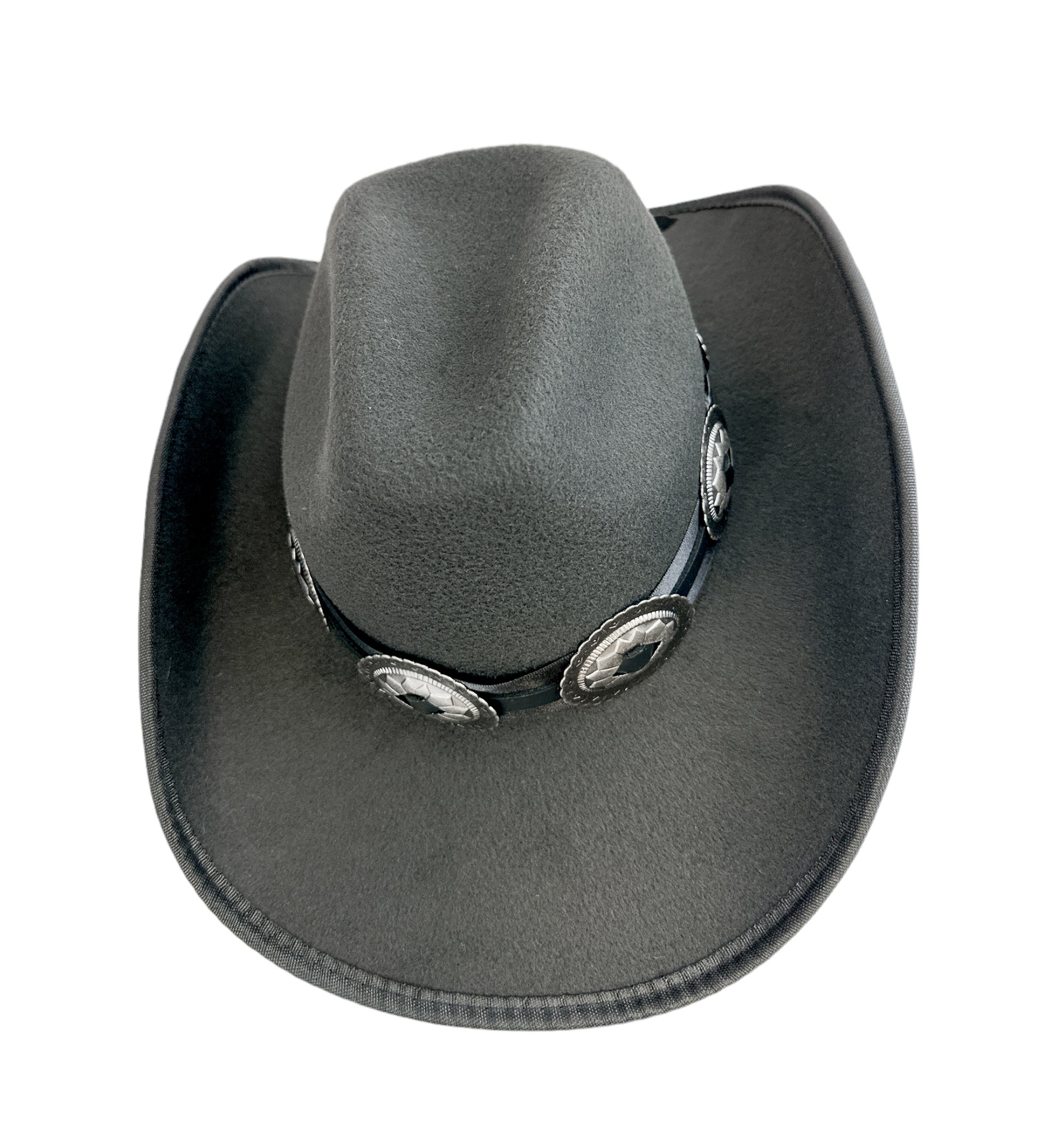 Cowboy Hat Wide Brim Antique Silver Western Oval Conch Western Leather Band