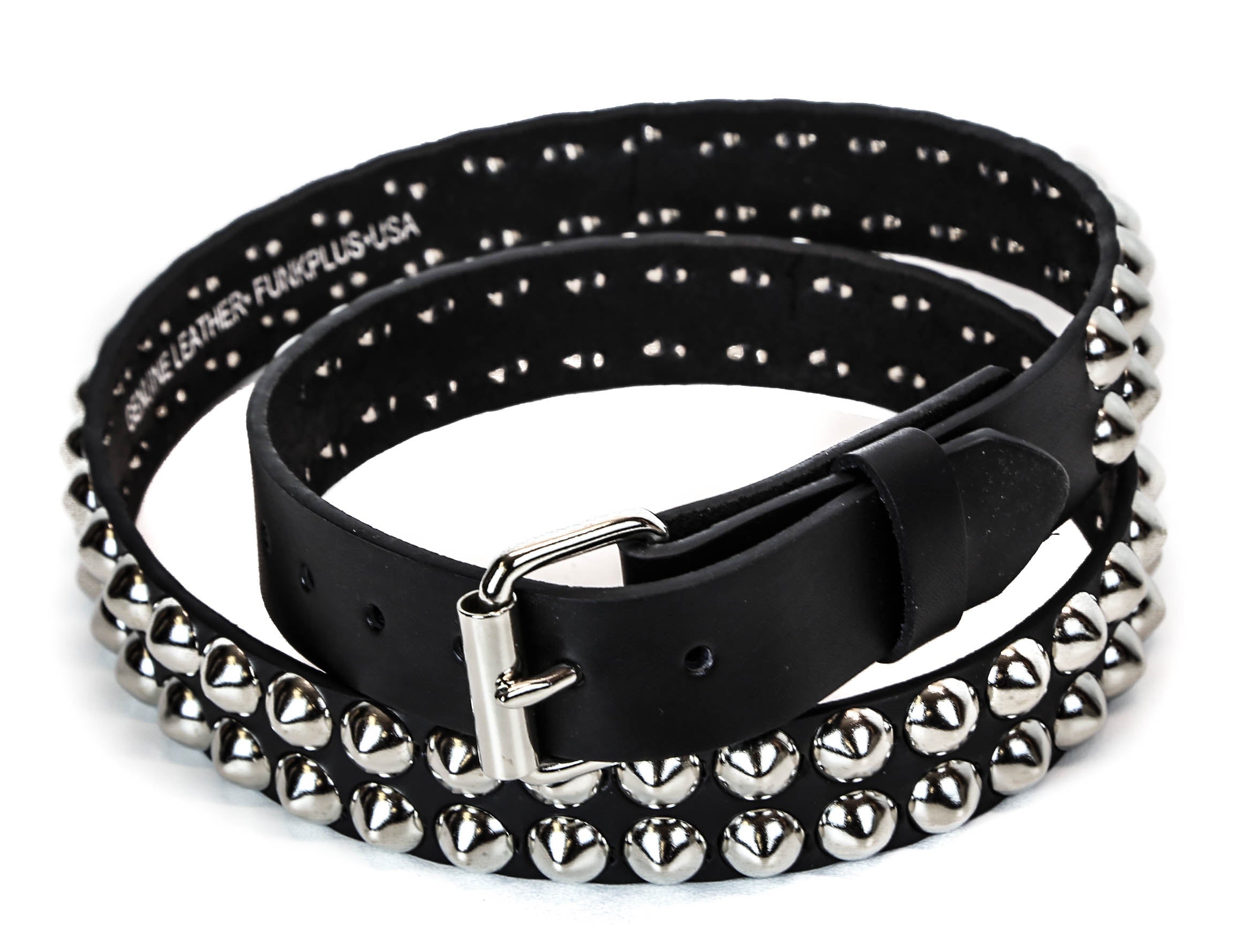 Double Row Black Big Conical Stud Belt By Funk Plus