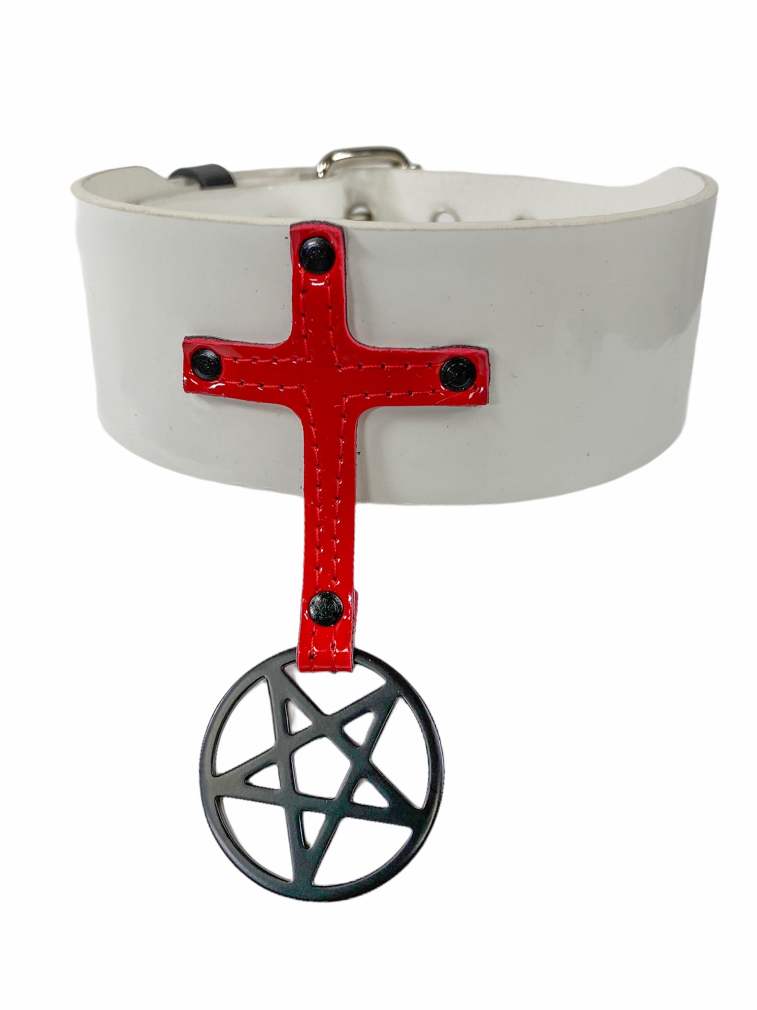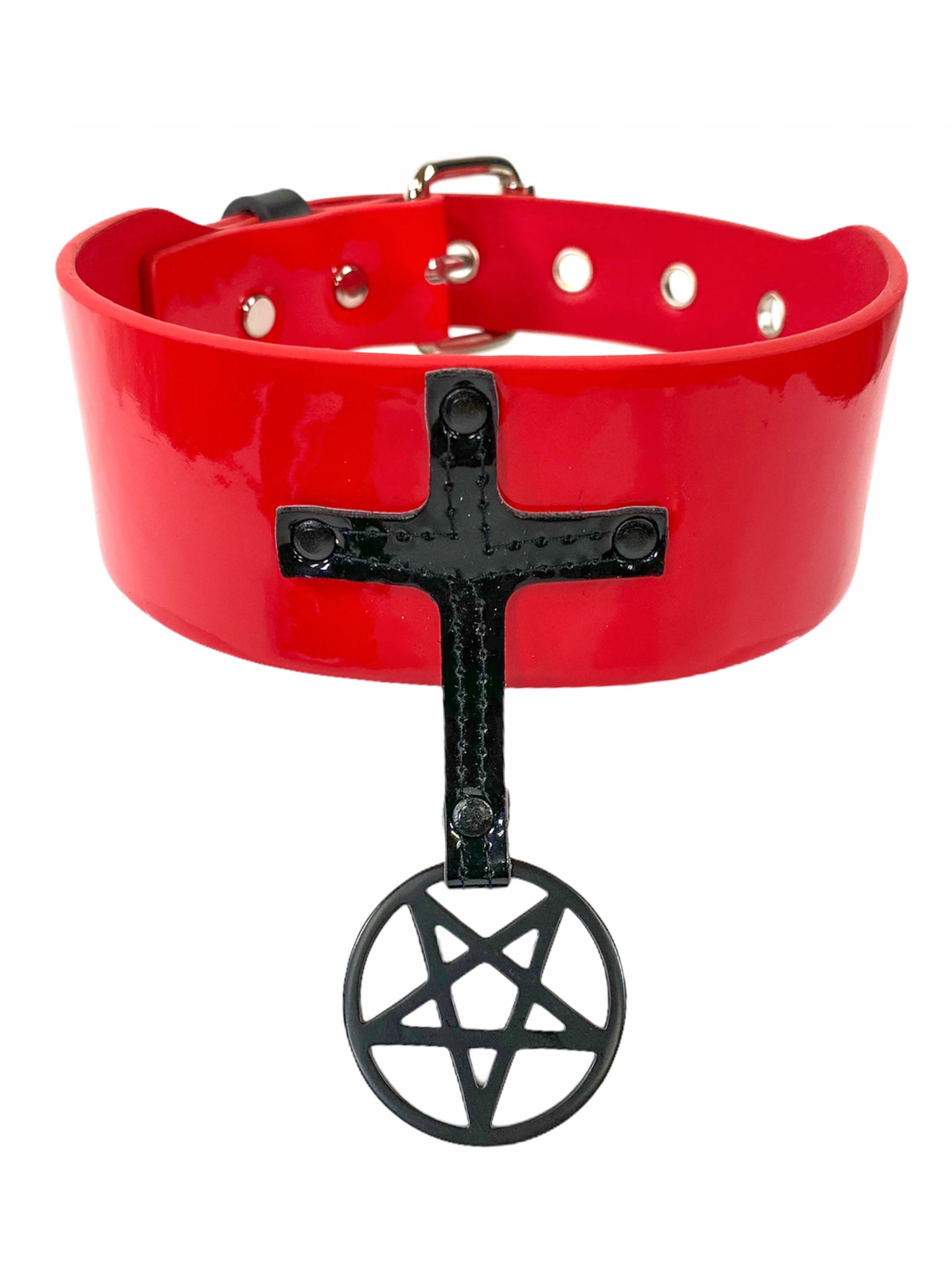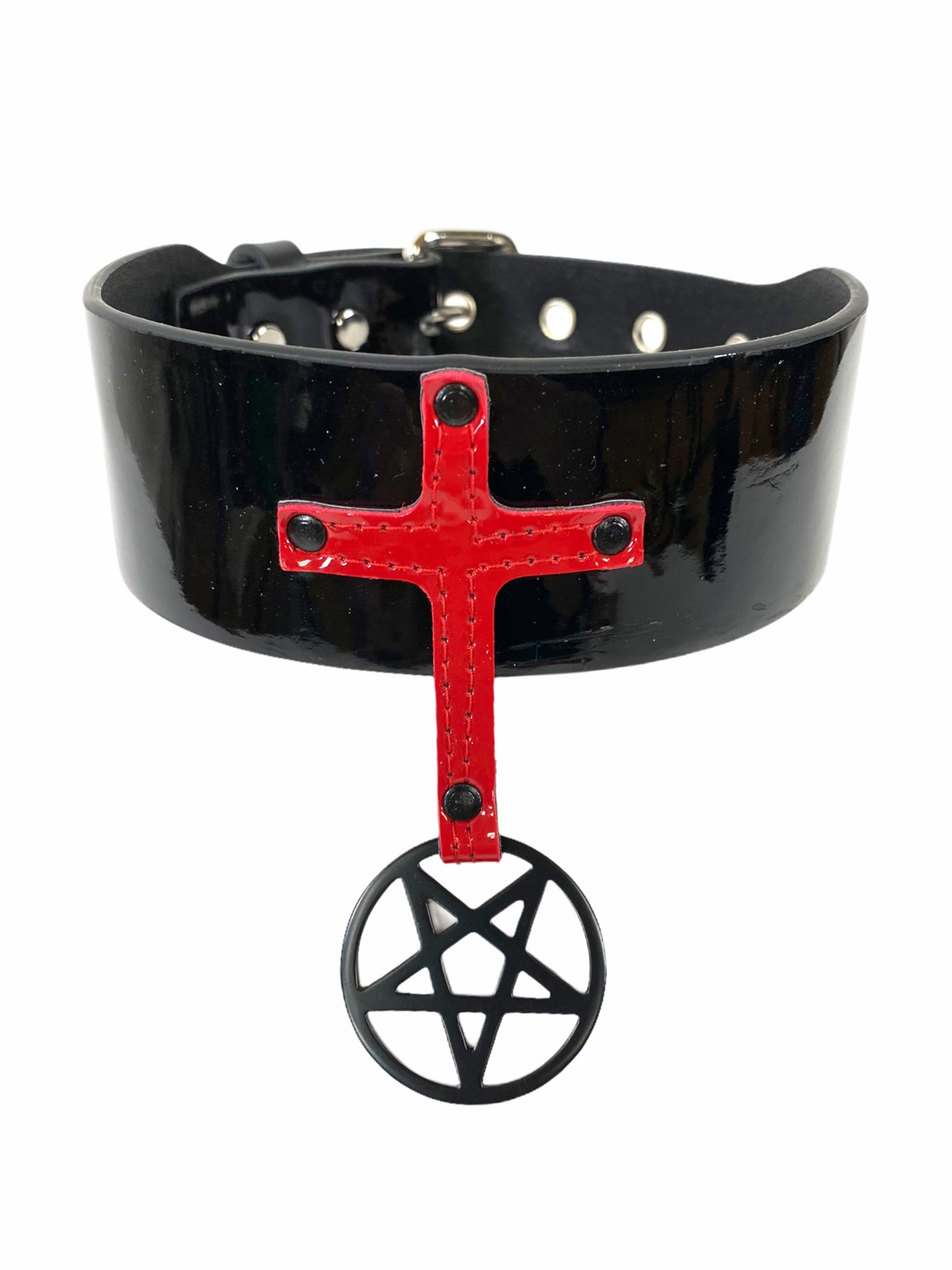 PATENT LEATHER PENTA CROSS CHOKER