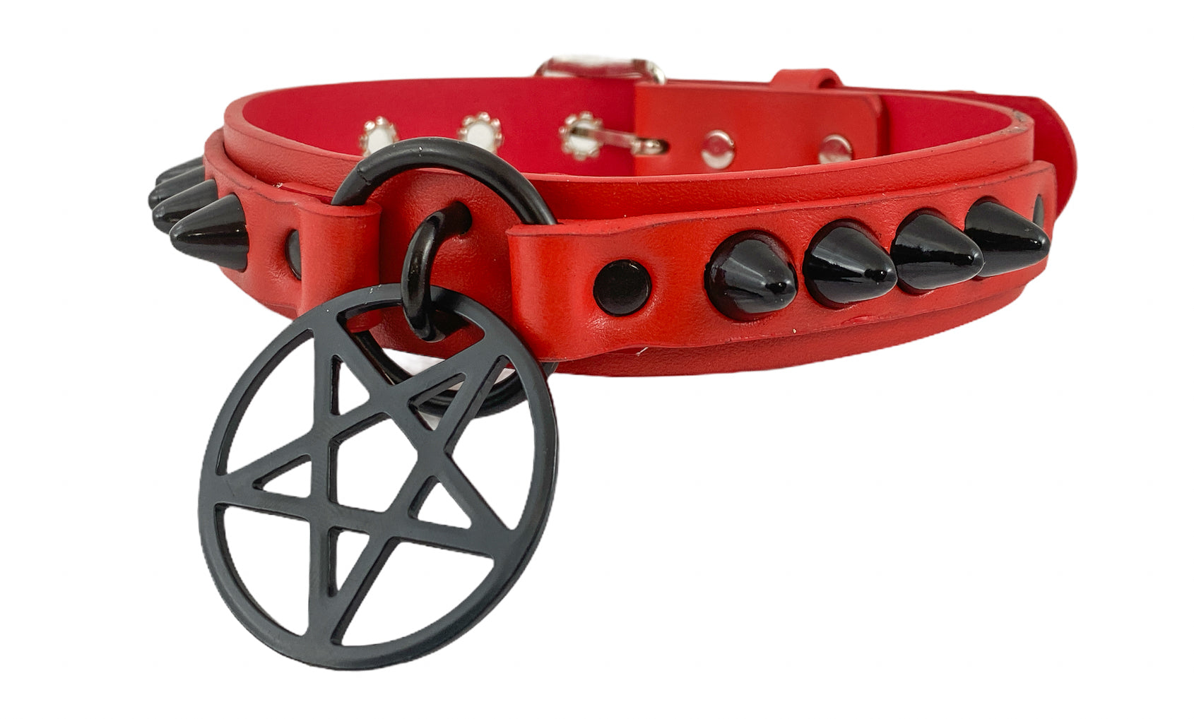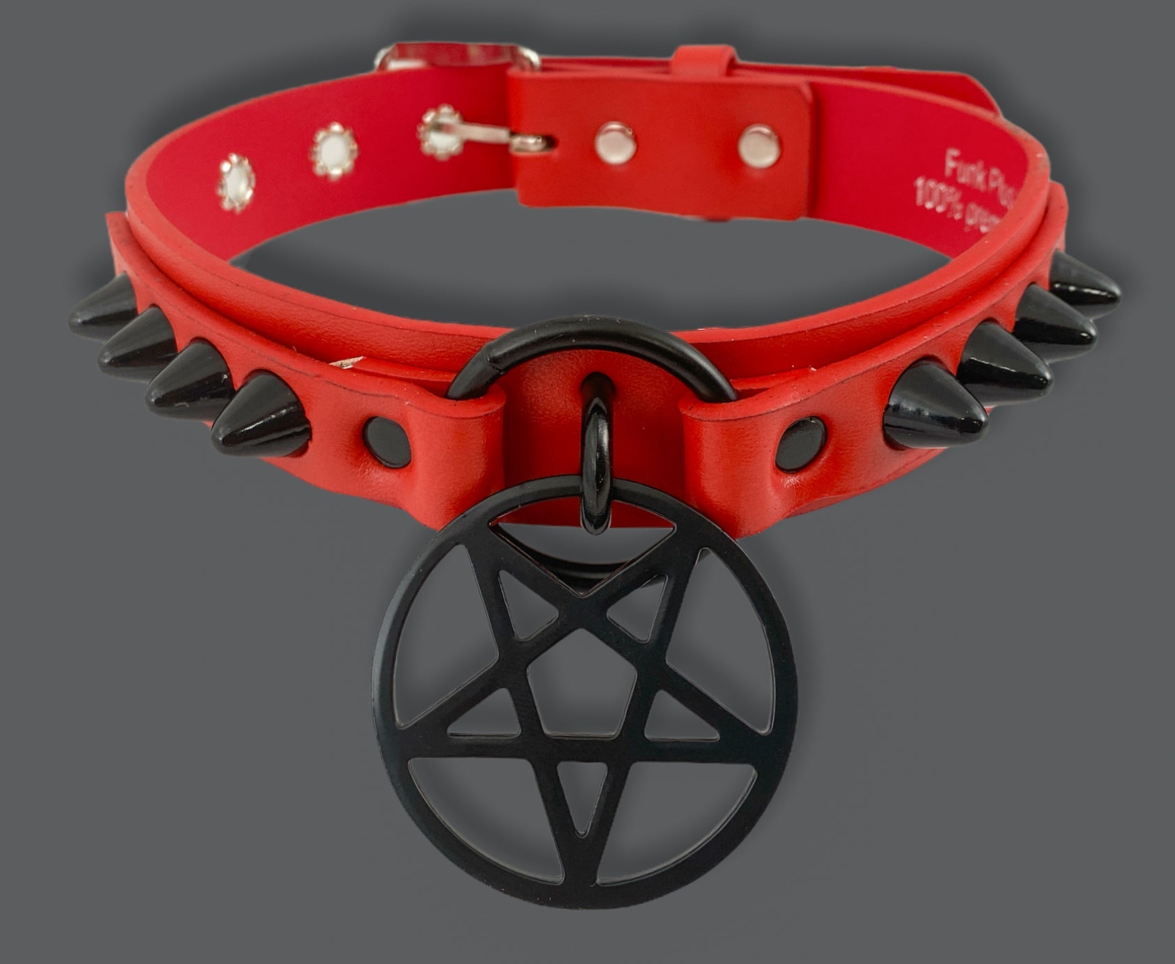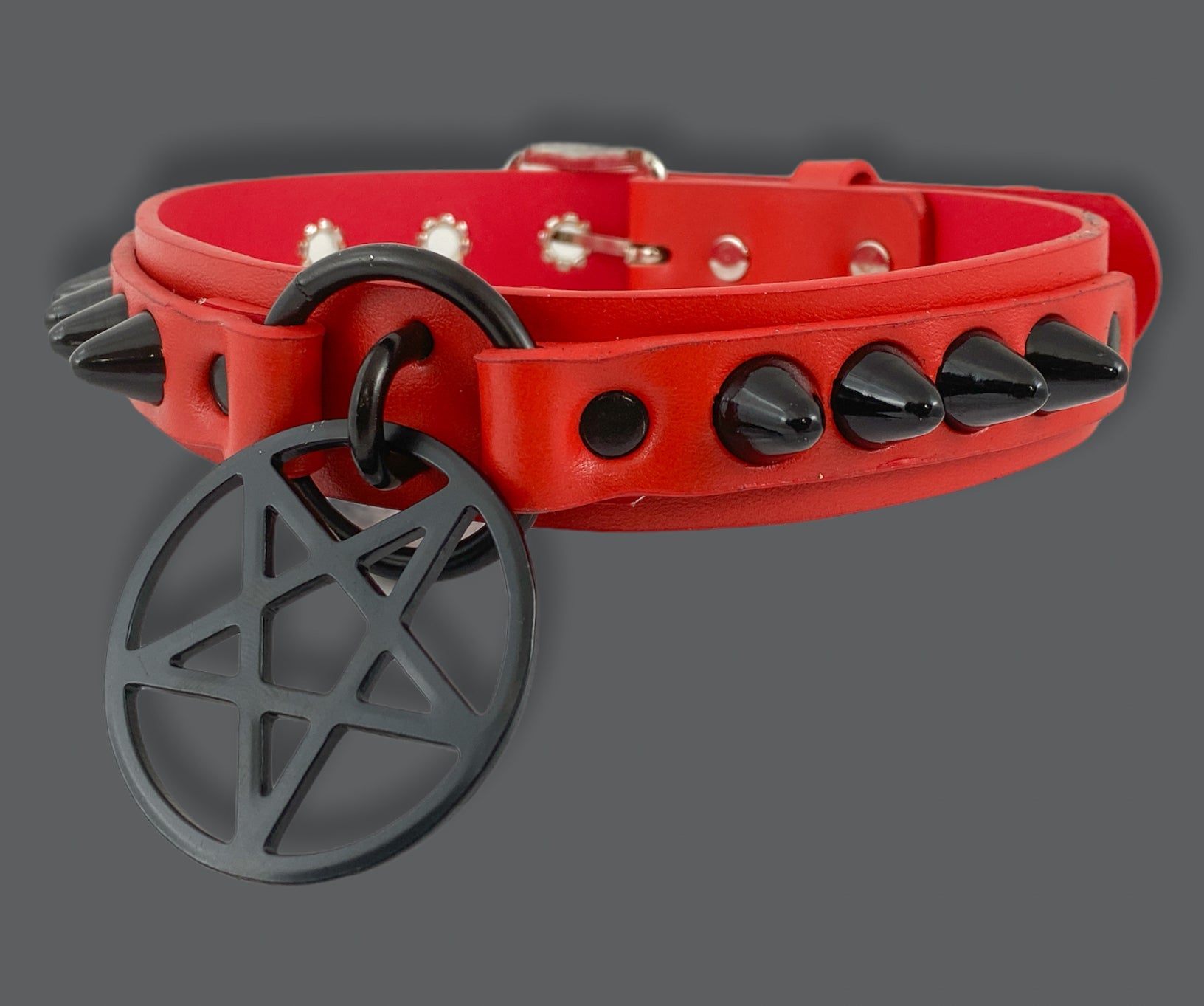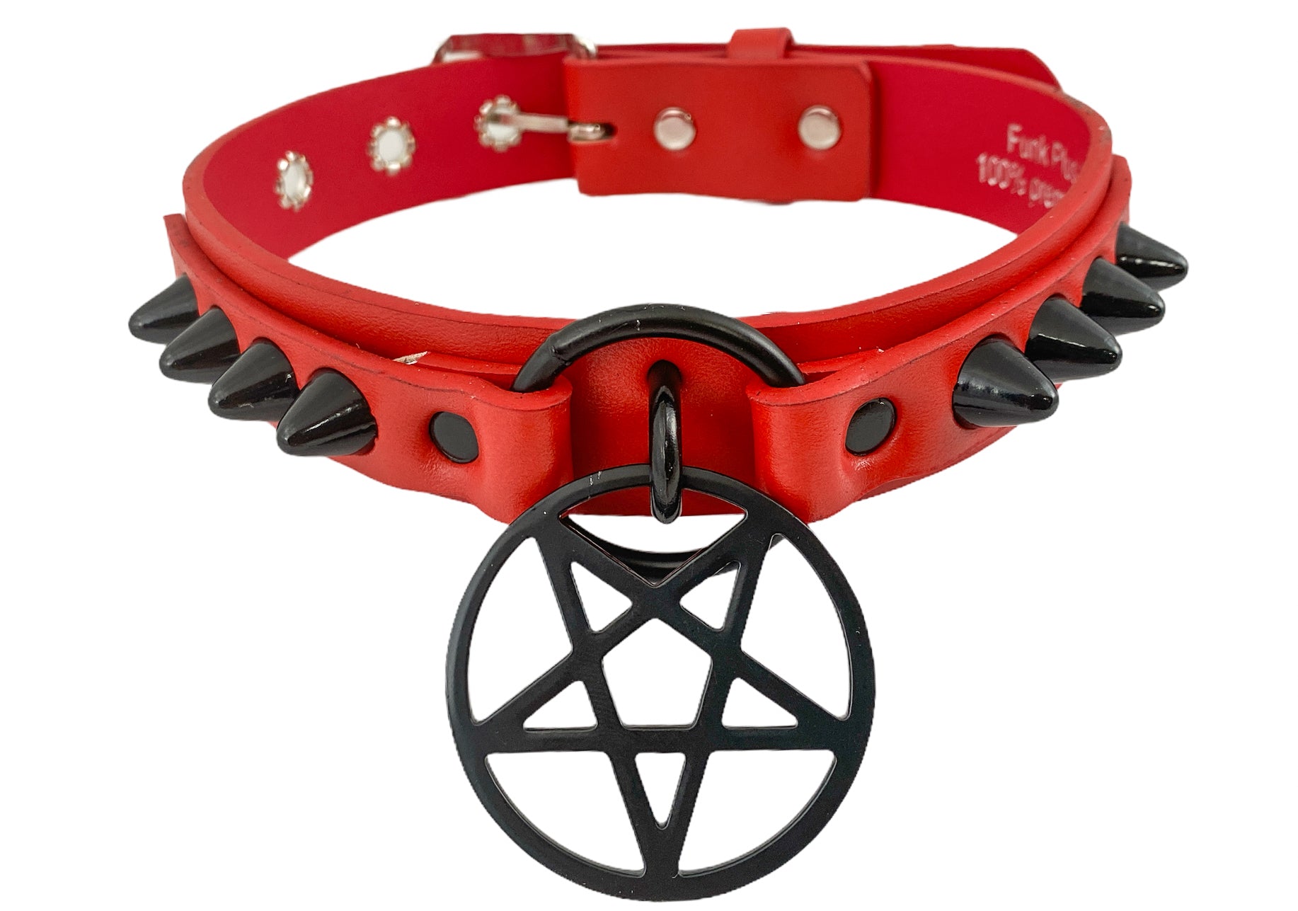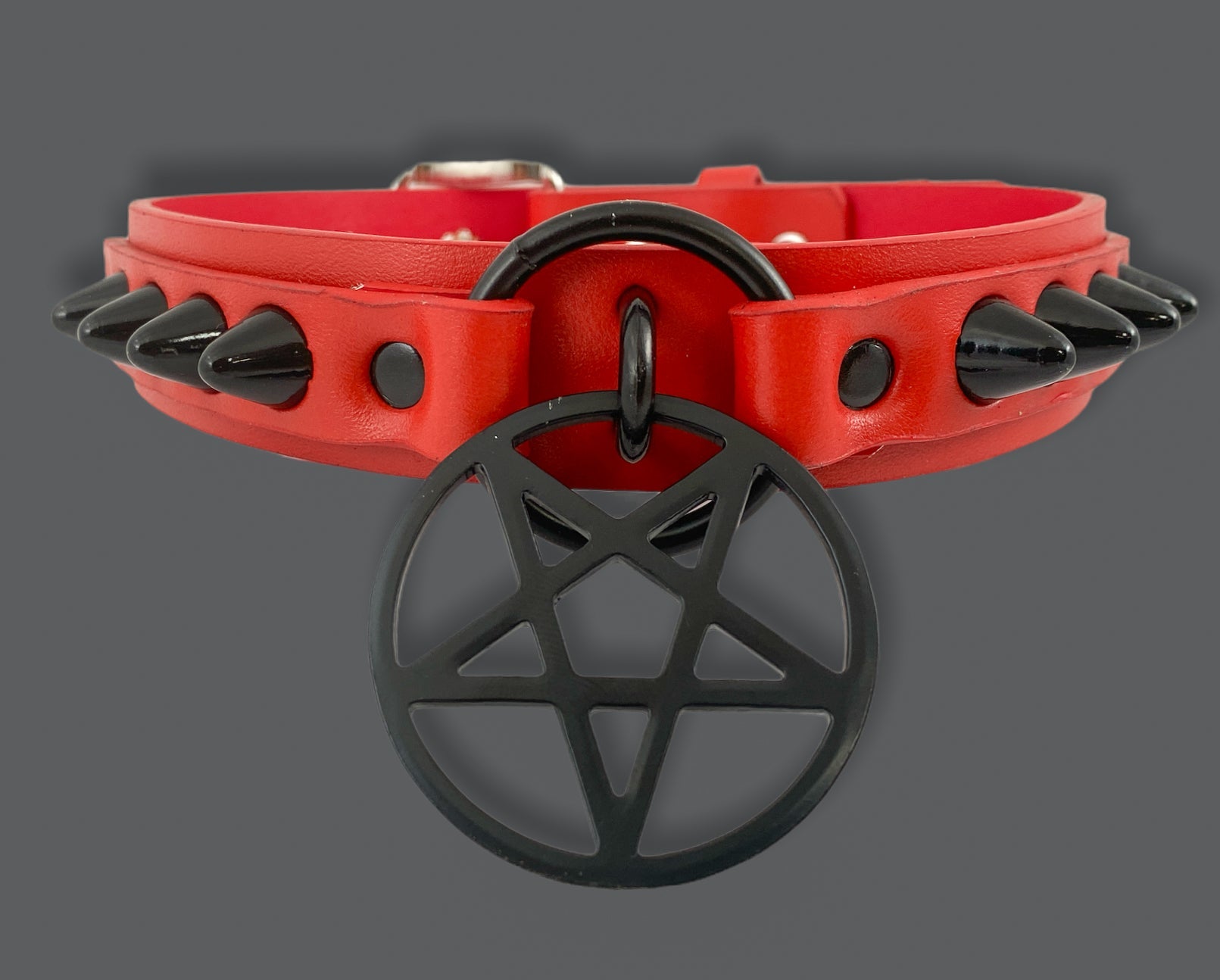 1 1/4" GENUINE-LEATHER CHOKER WITH U RING AND 2" STAINLESS STEEL PENTAGRAM RING AND UK 77 STUD