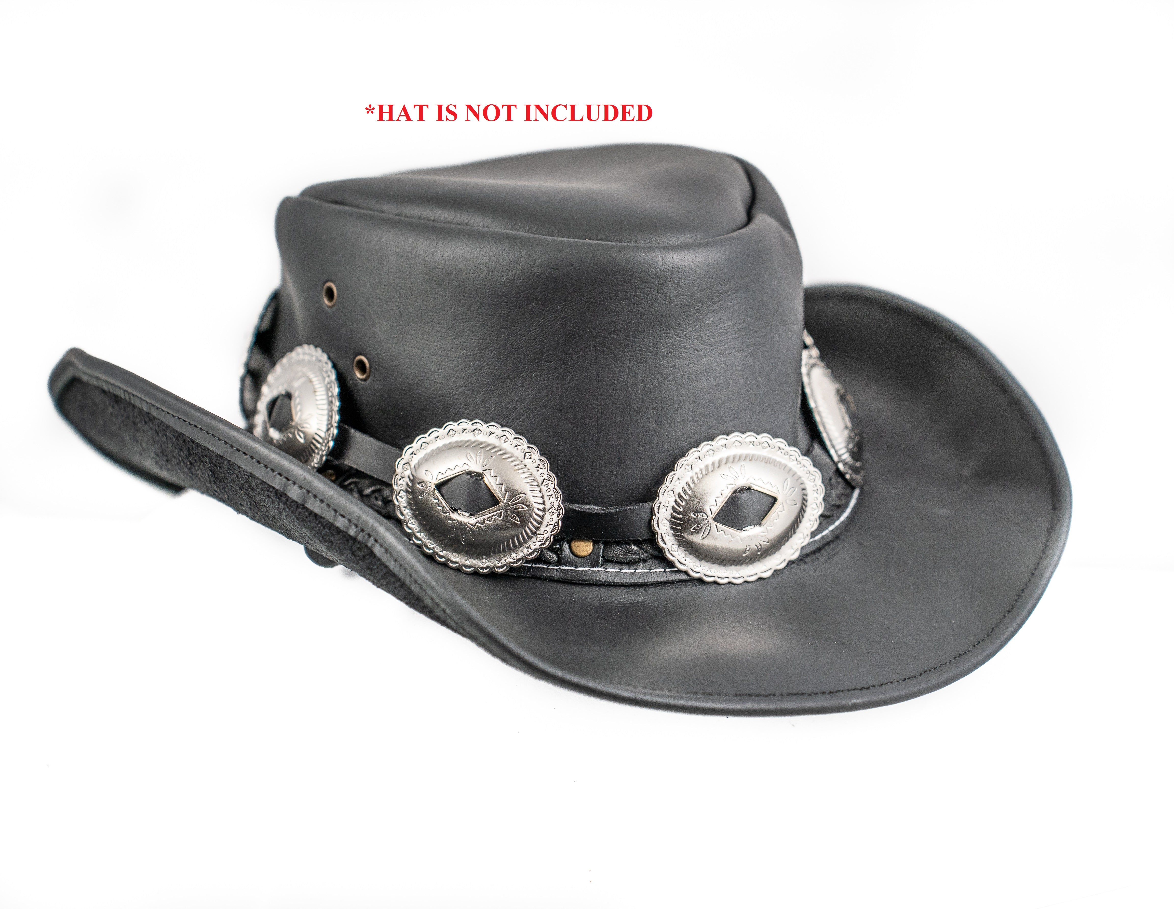 • Hat Is Not Included - Leather Concho Hat Band Only