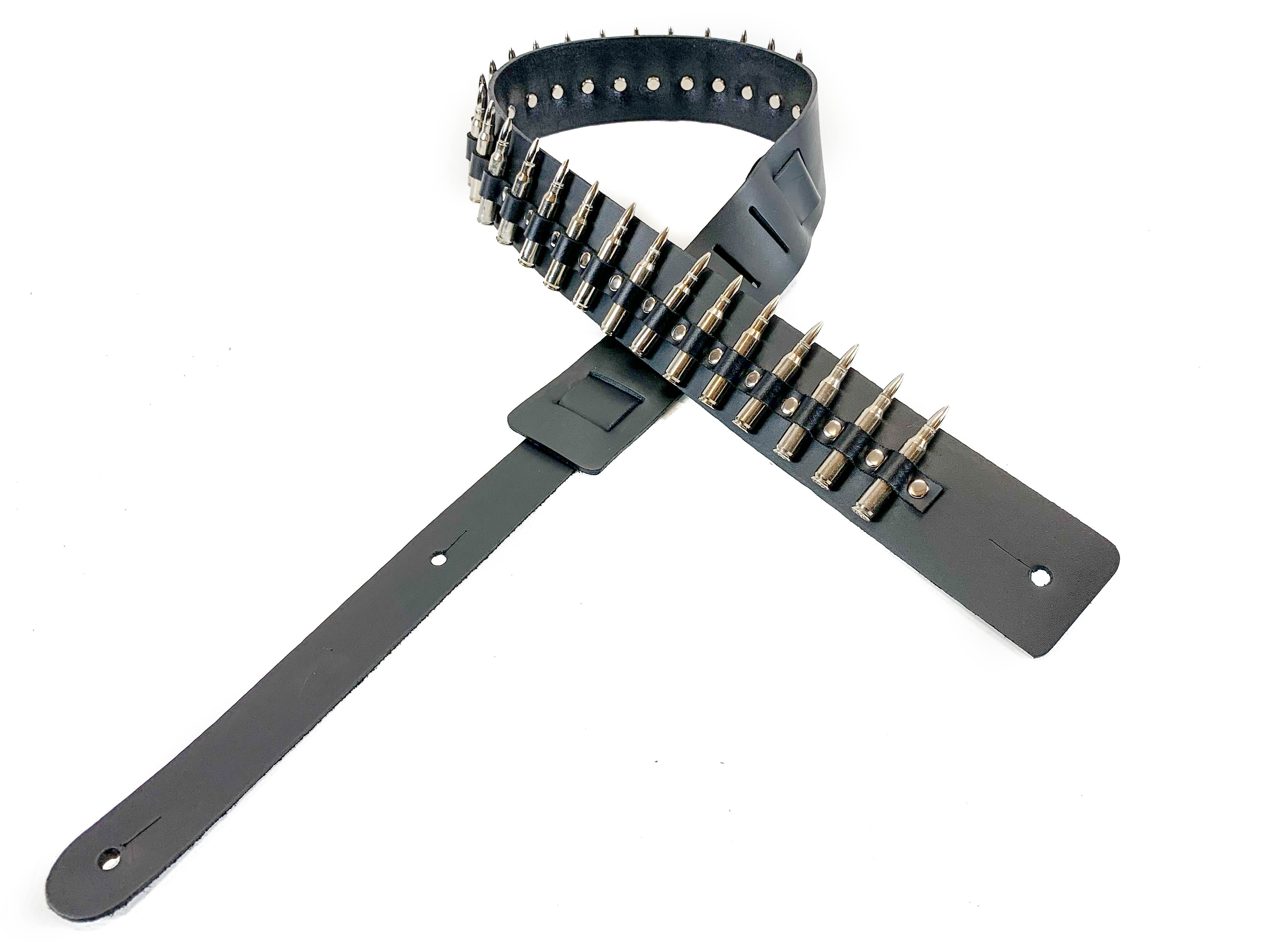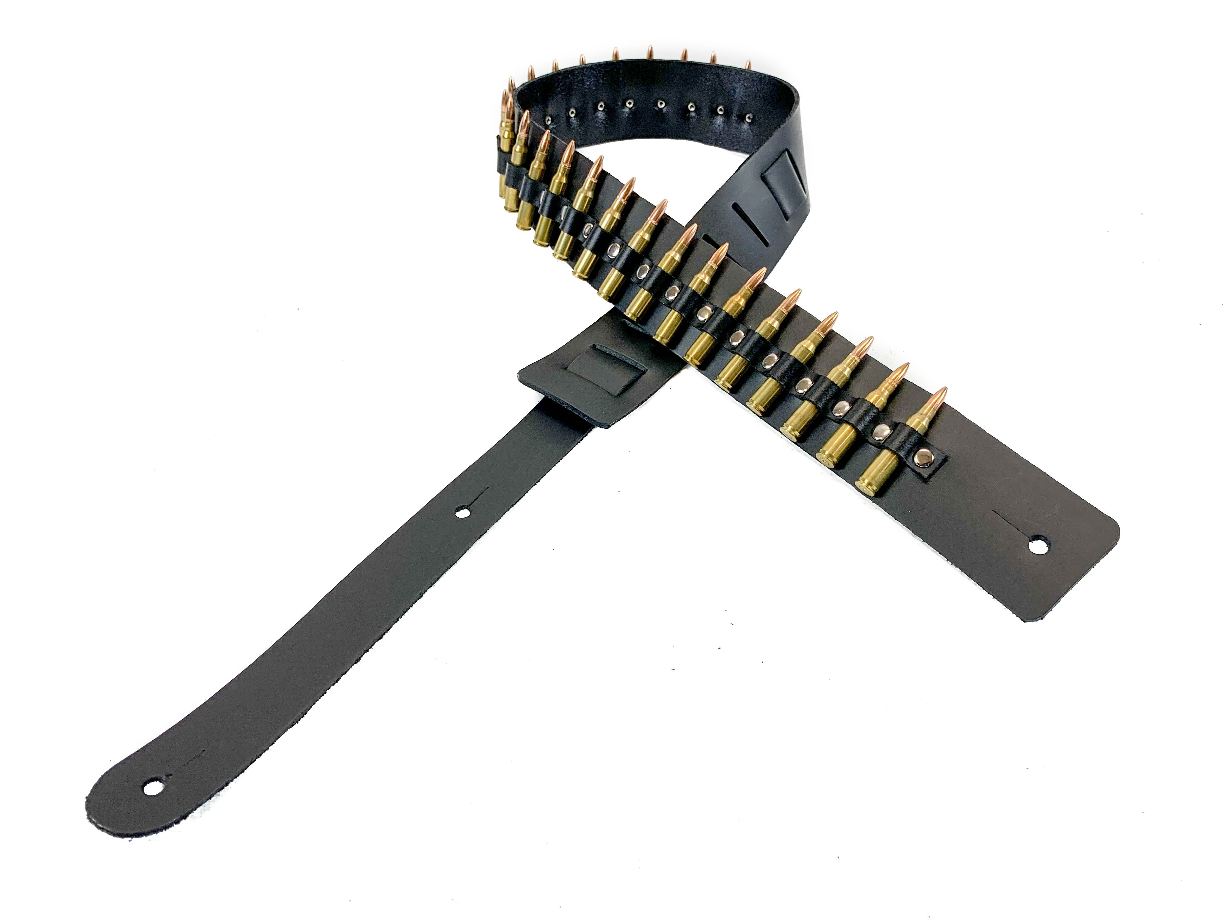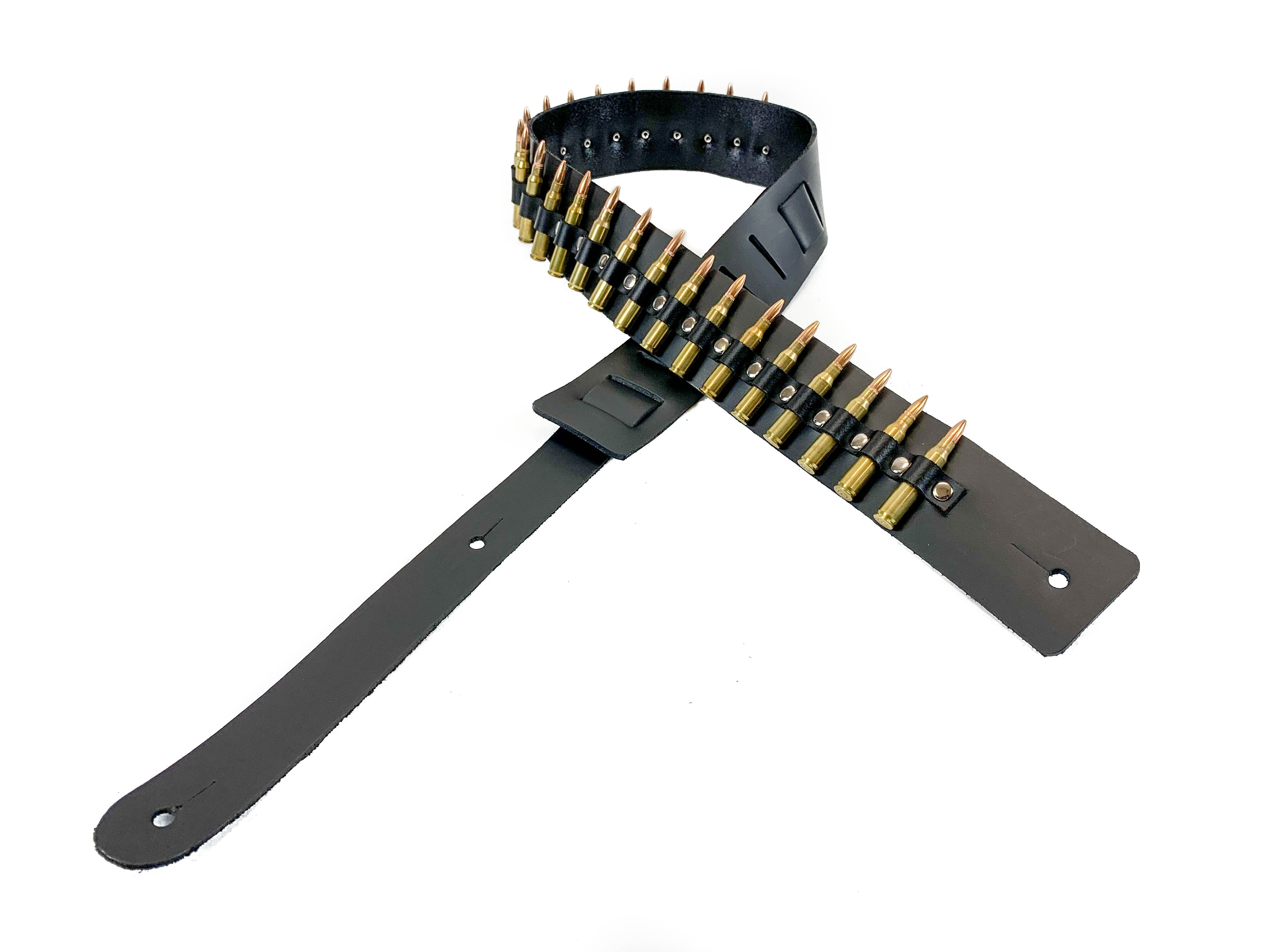M16 Bullet Guitar Strap .223 Caliber Brass Nickel Shell Copper Tips Cowhide Leather
