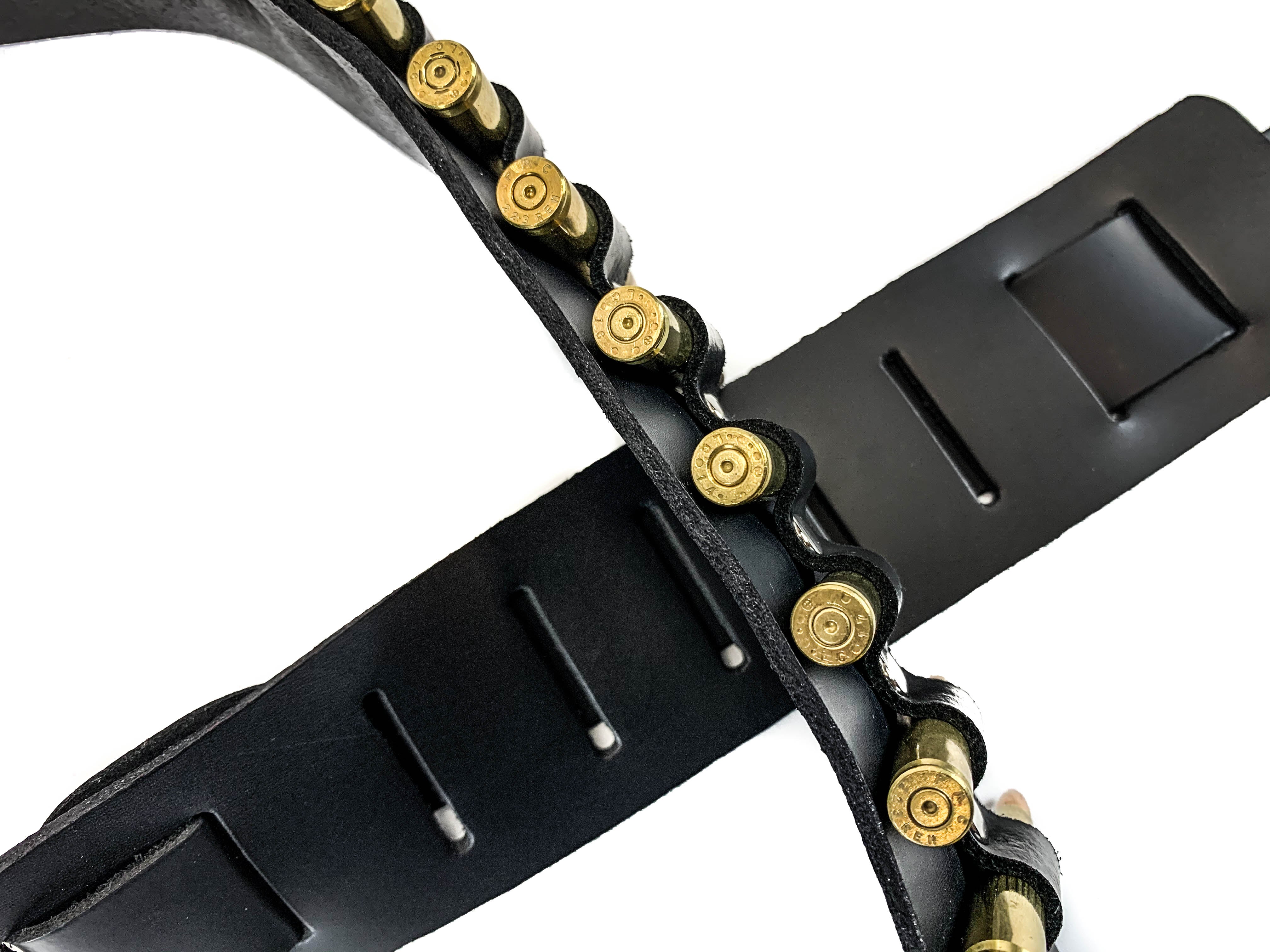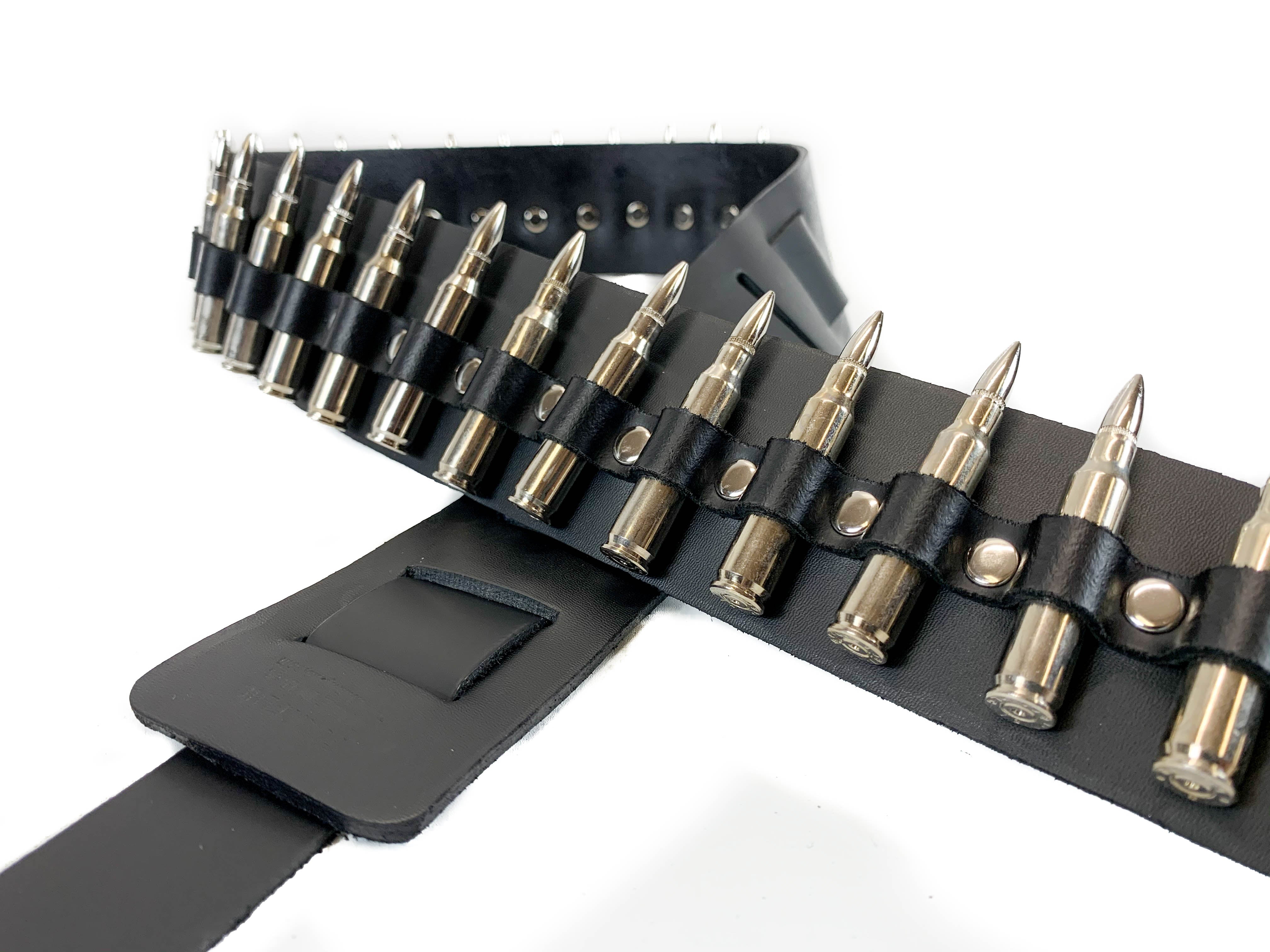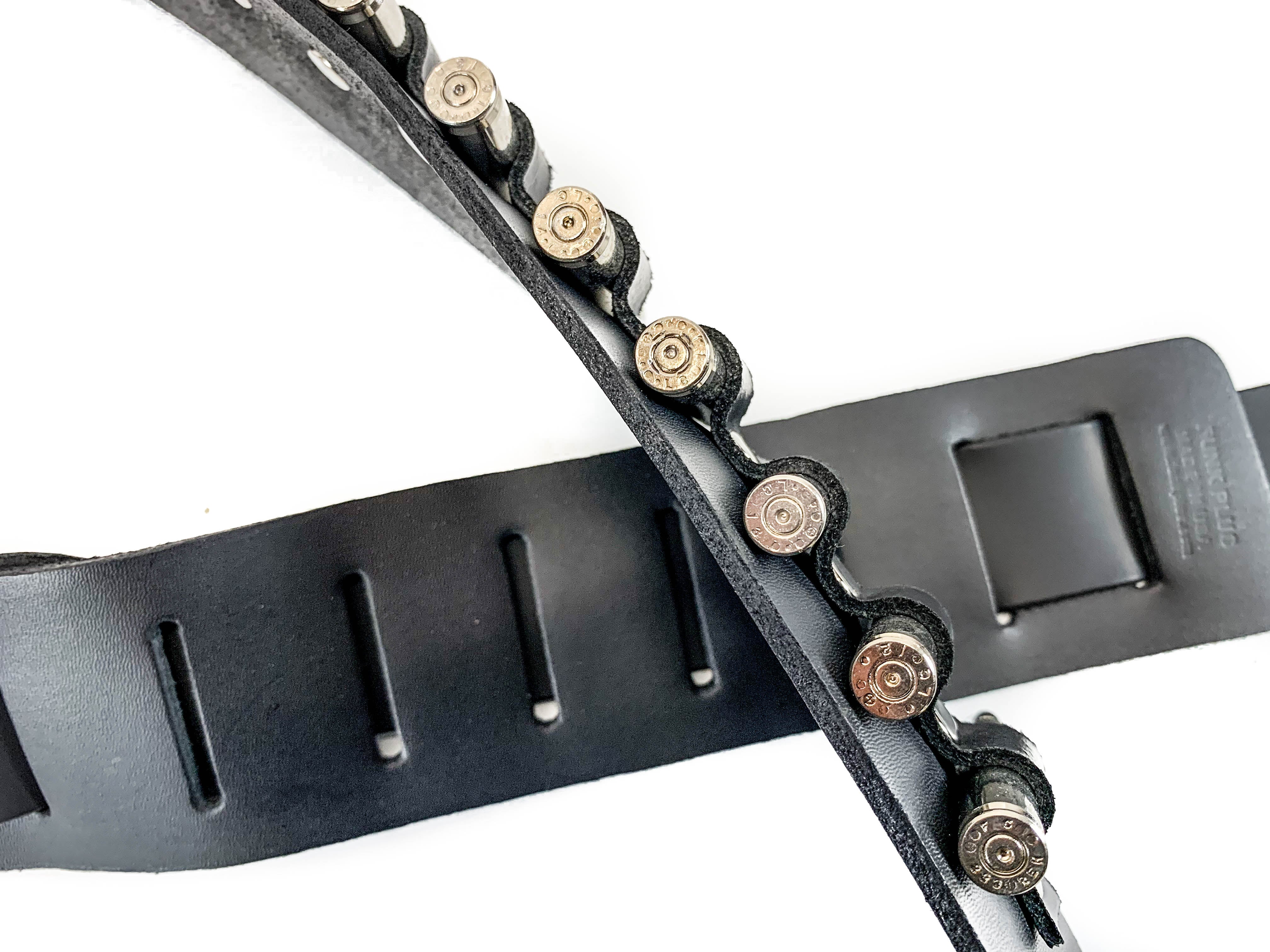 M16 Bullet Guitar Strap .223 Caliber Brass Nickel Shell Copper Tips Cowhide Leather