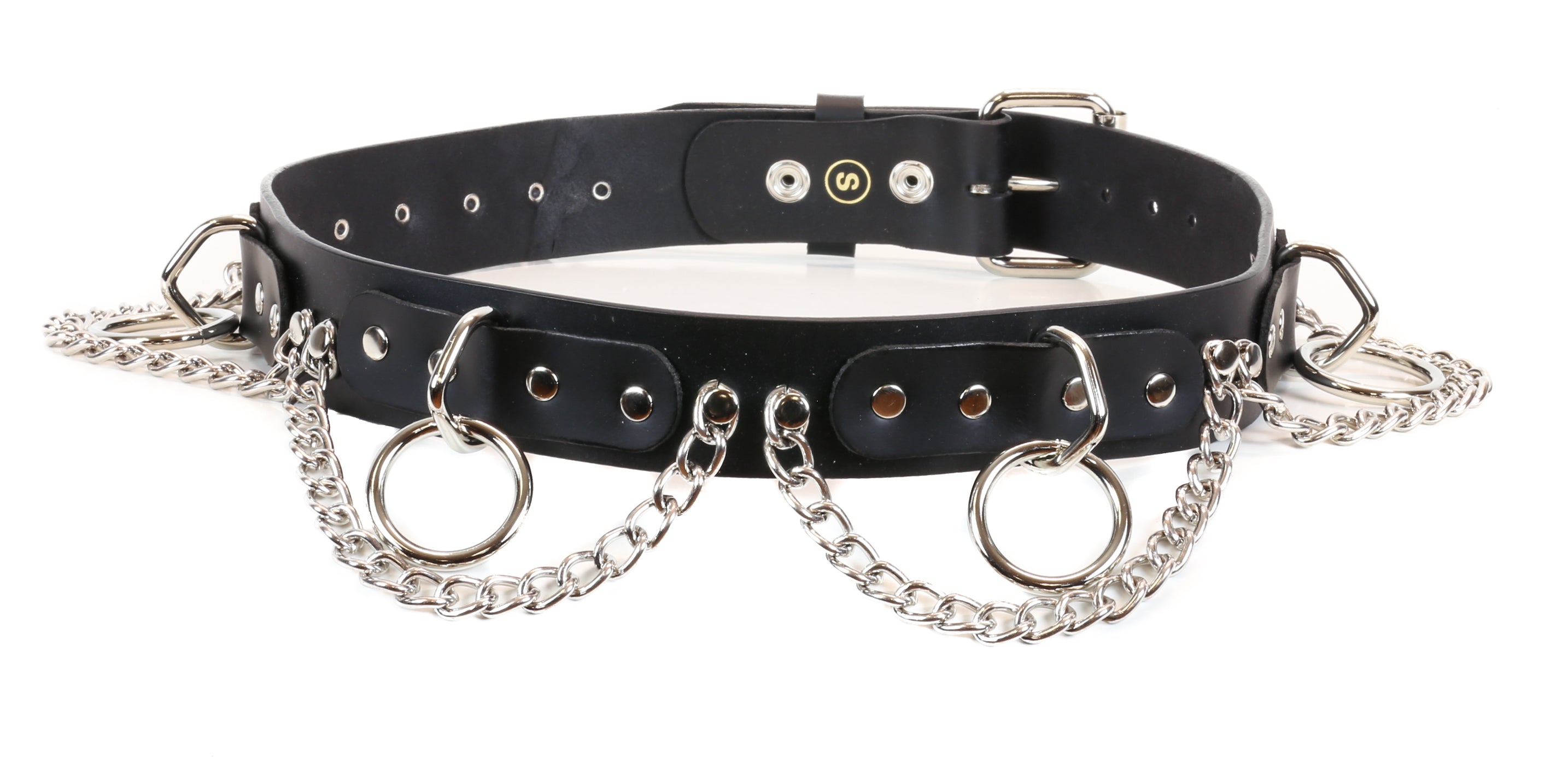 Medium Ring Hanging Chain Bondage Wide Belt Genuine Leather