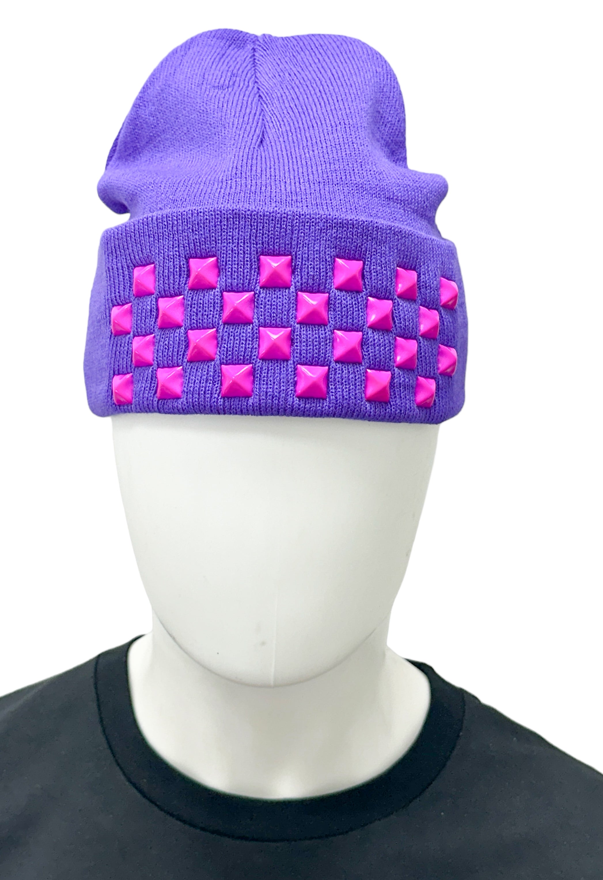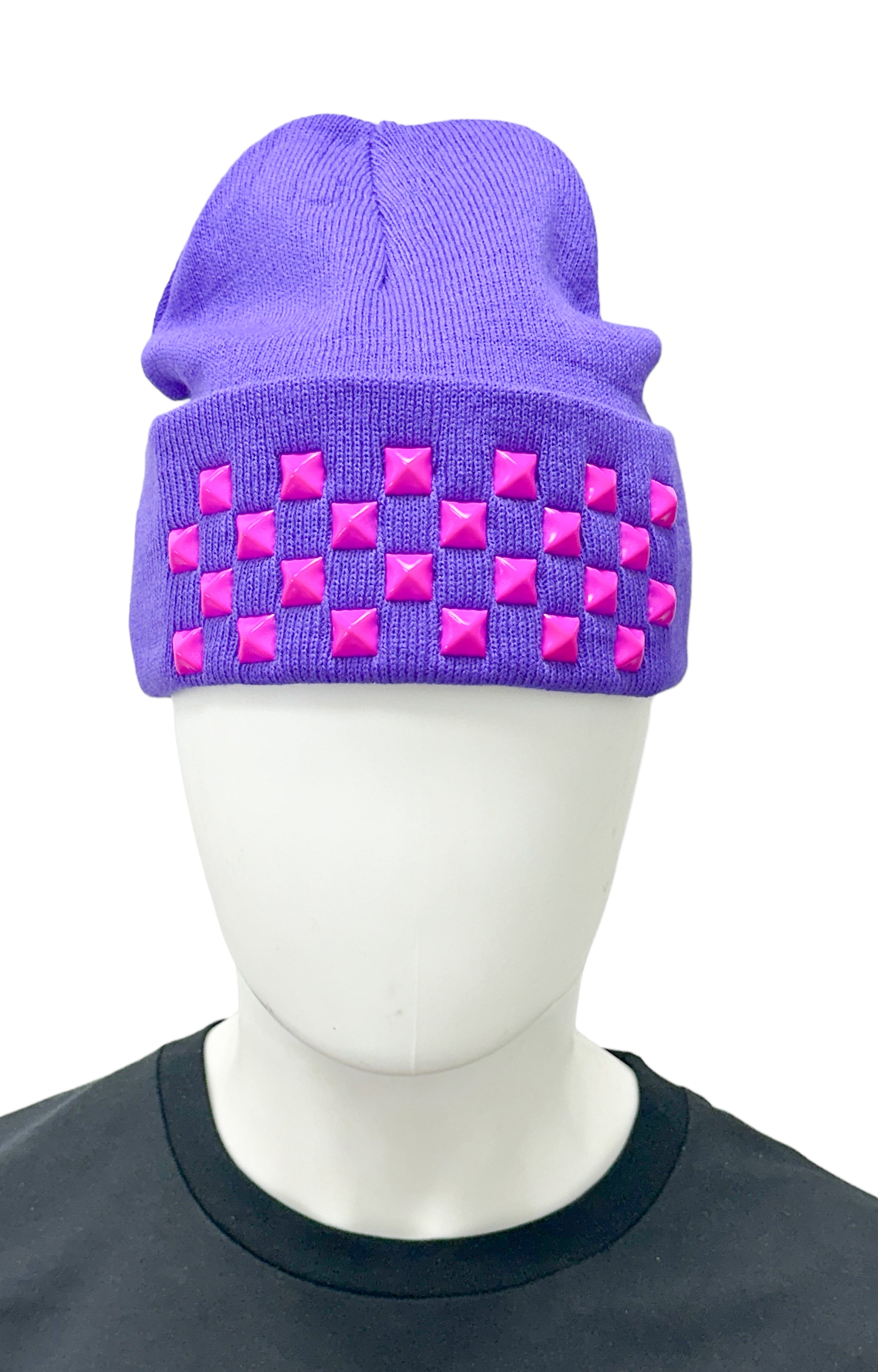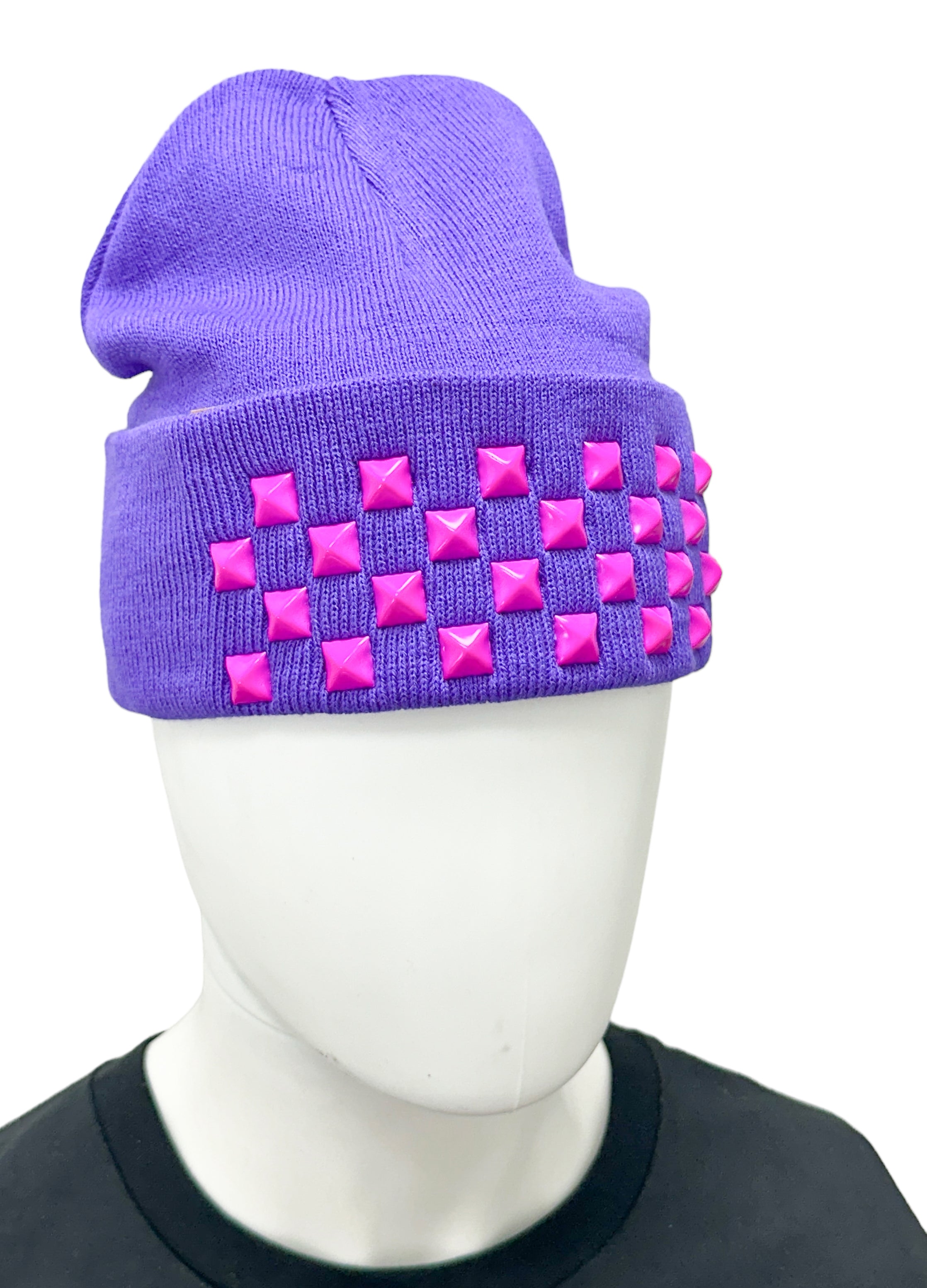 1/2" SILVER  PYRAMID  STUDDED BEANIE