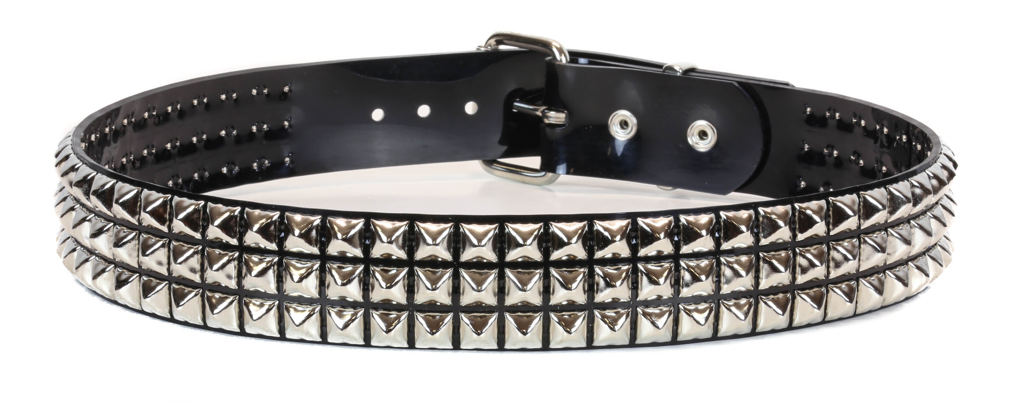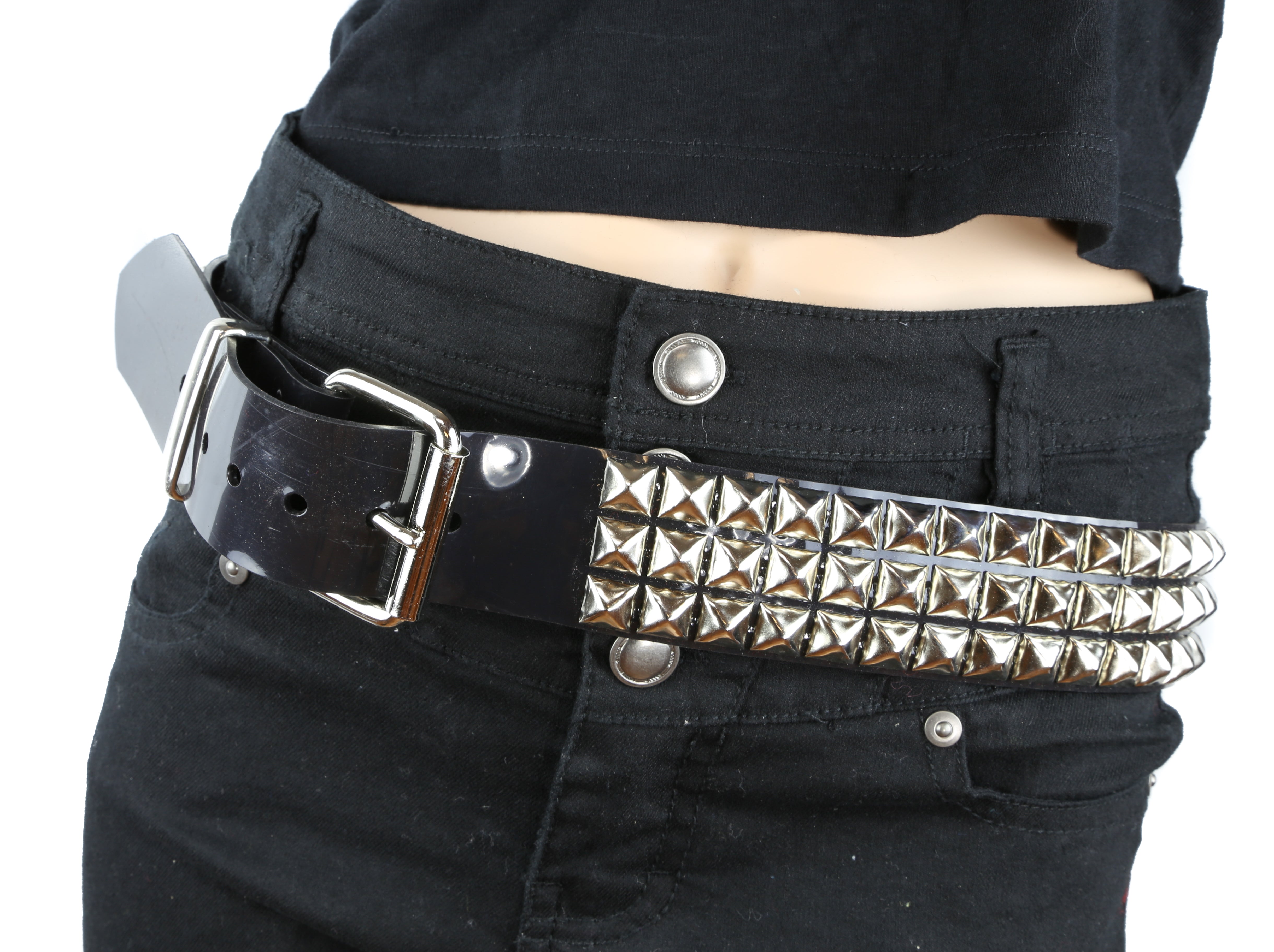 PVC Vinyl Black 3 Row Studded Punk Influenced Belt By Funk Plus