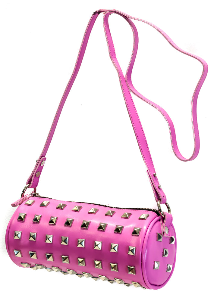 Black Cylinder Bag With Pyramid Studs