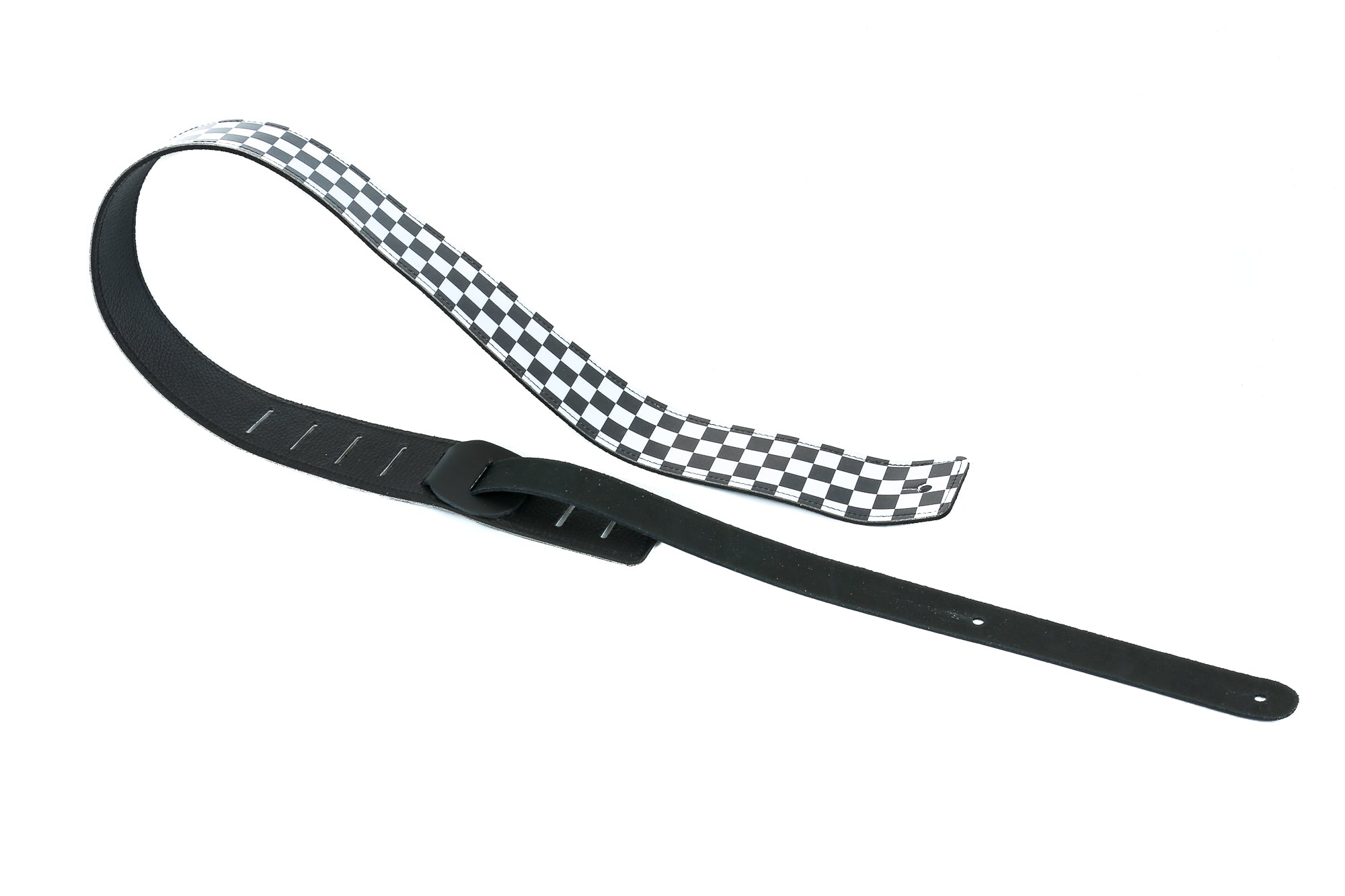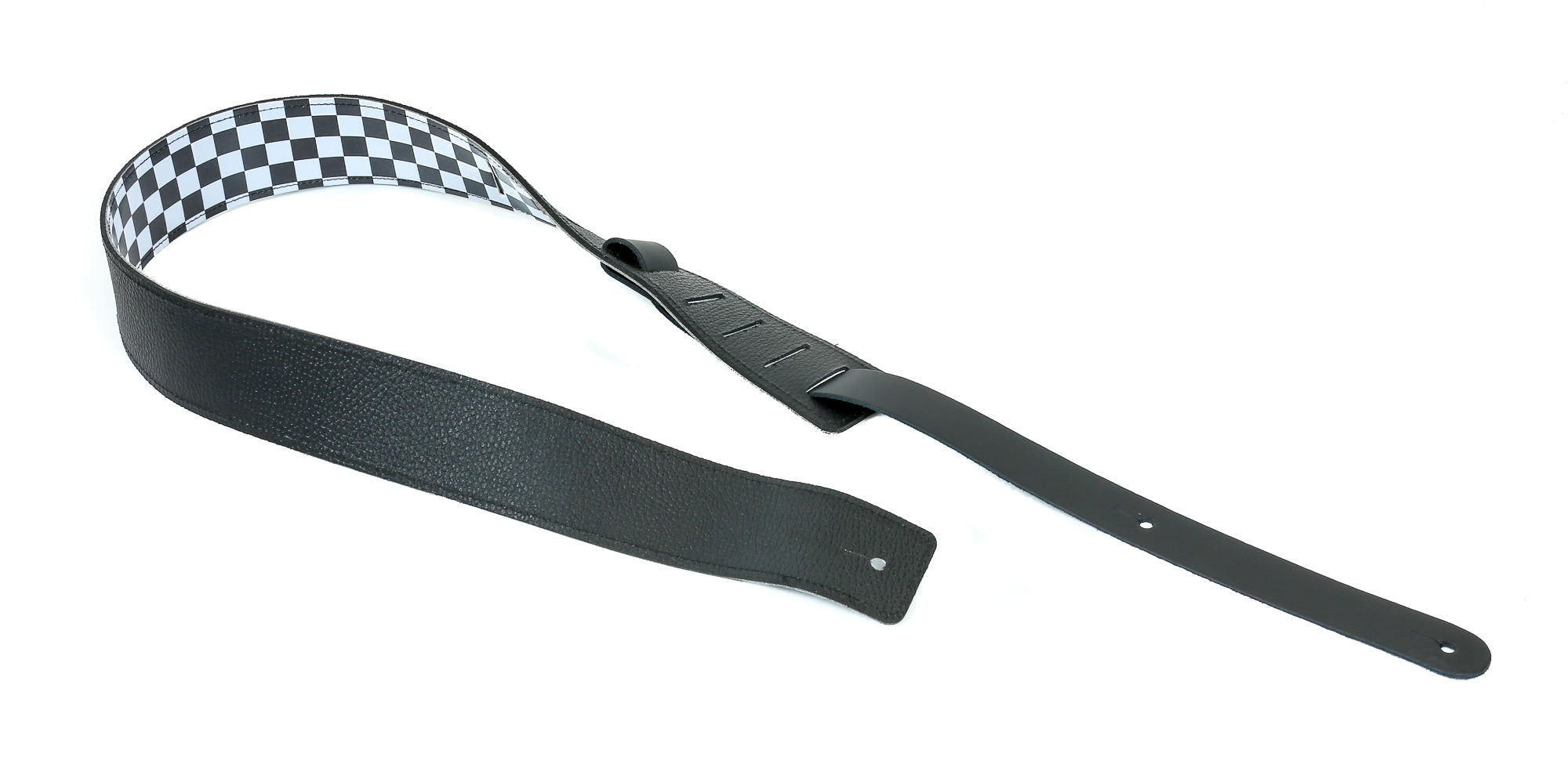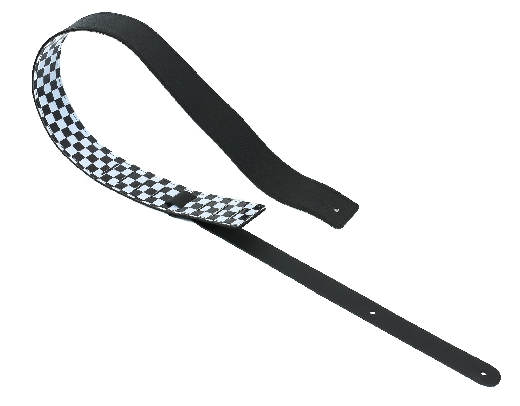 Reversible Genuine Buffalo Leather Checkerboard Classic Guitar Strap White