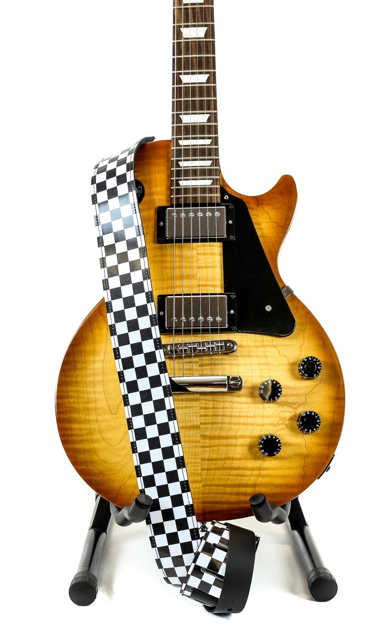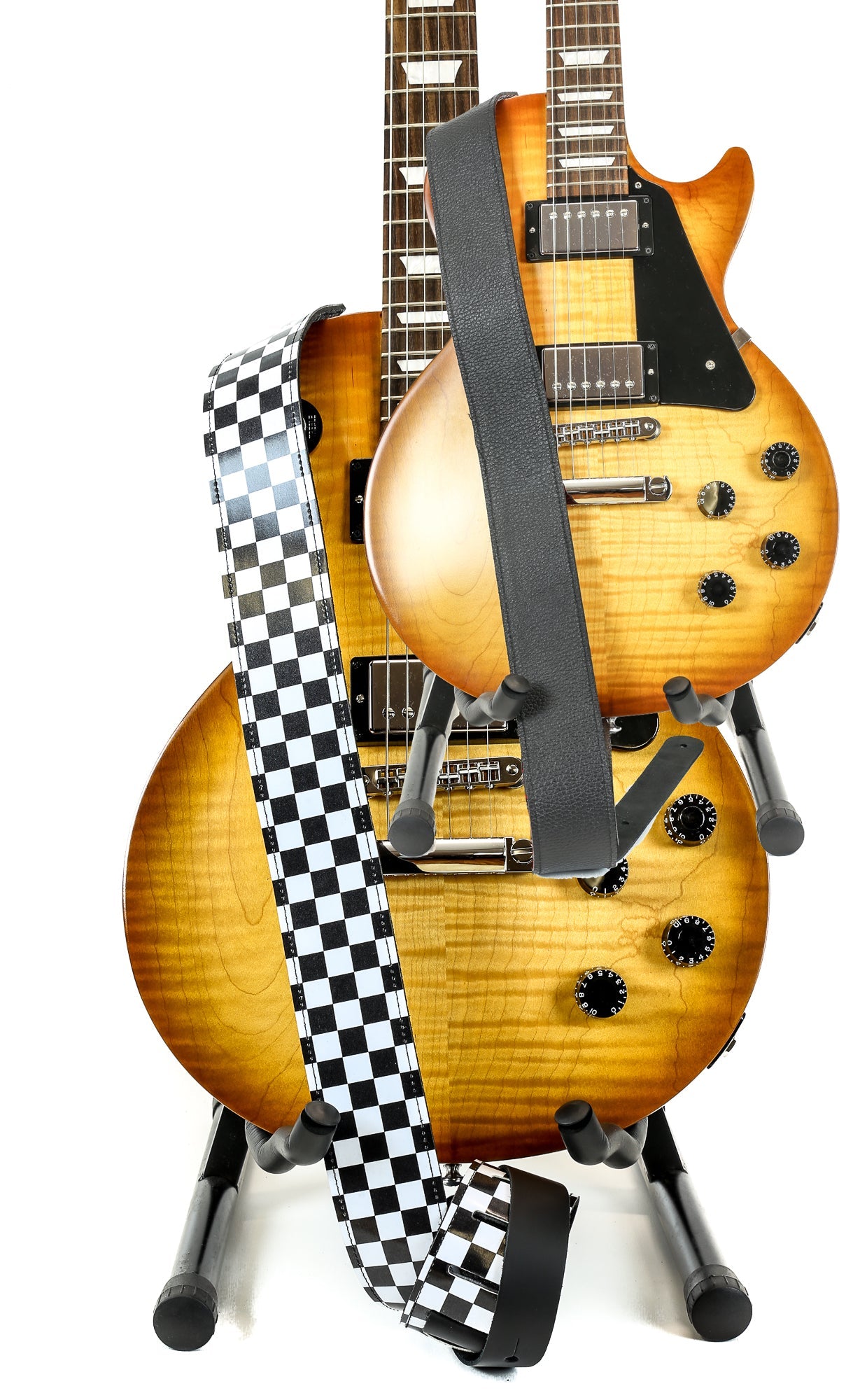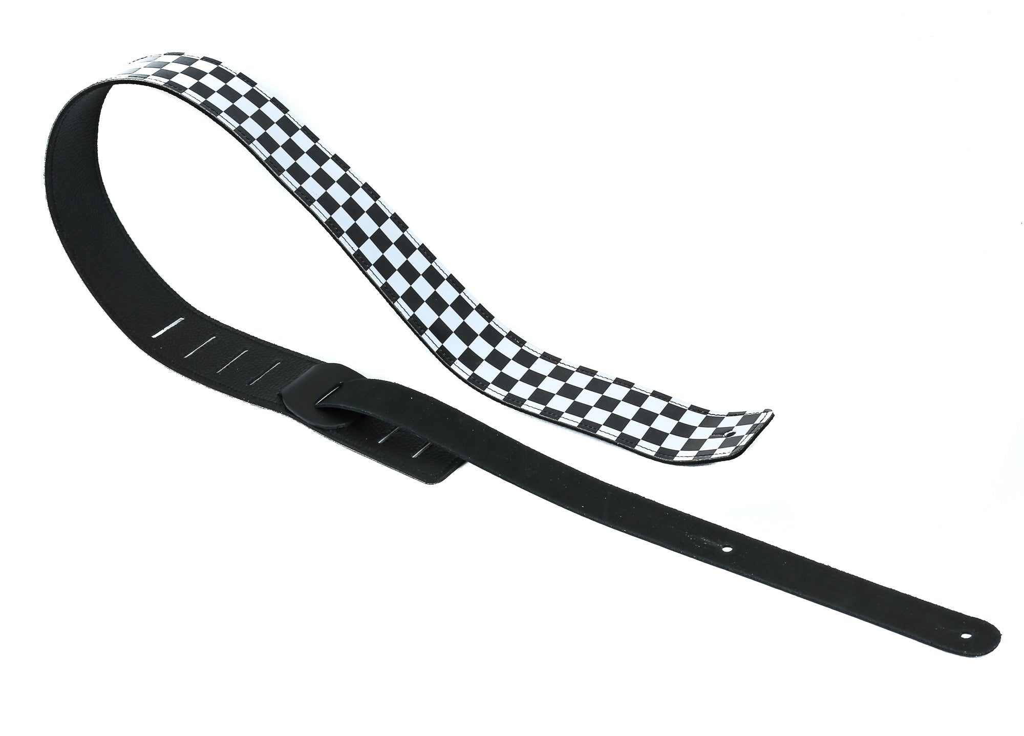 Reversible Genuine Buffalo Leather Checkerboard Classic Guitar Strap White