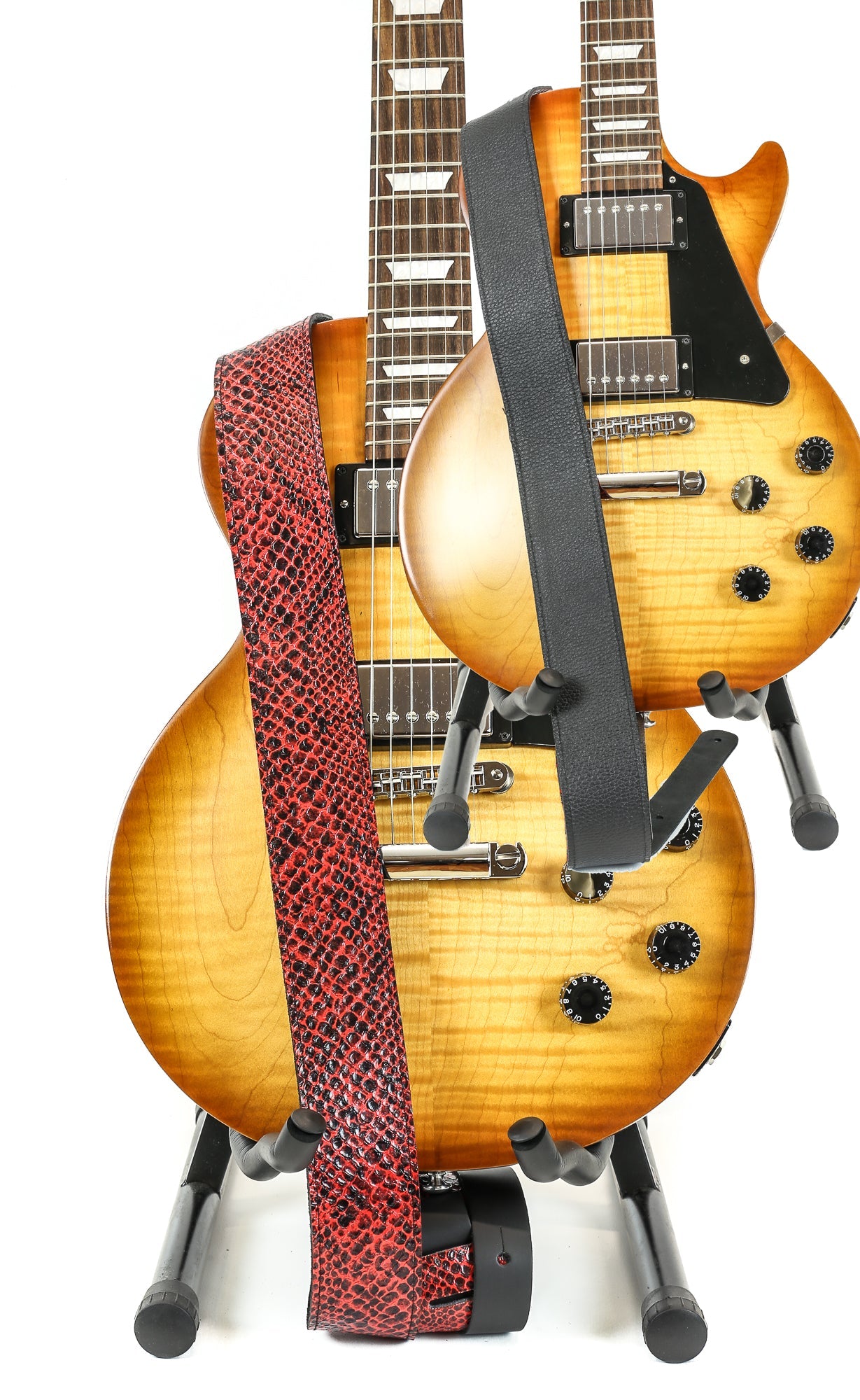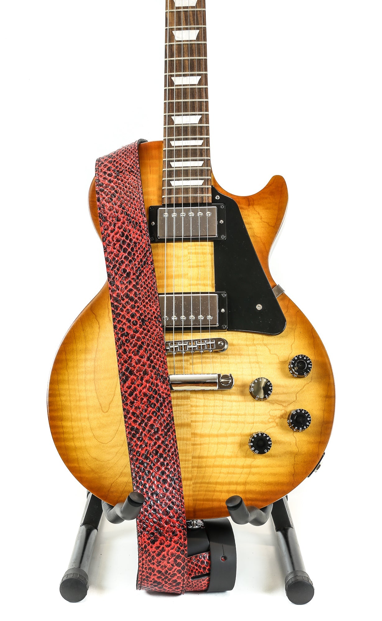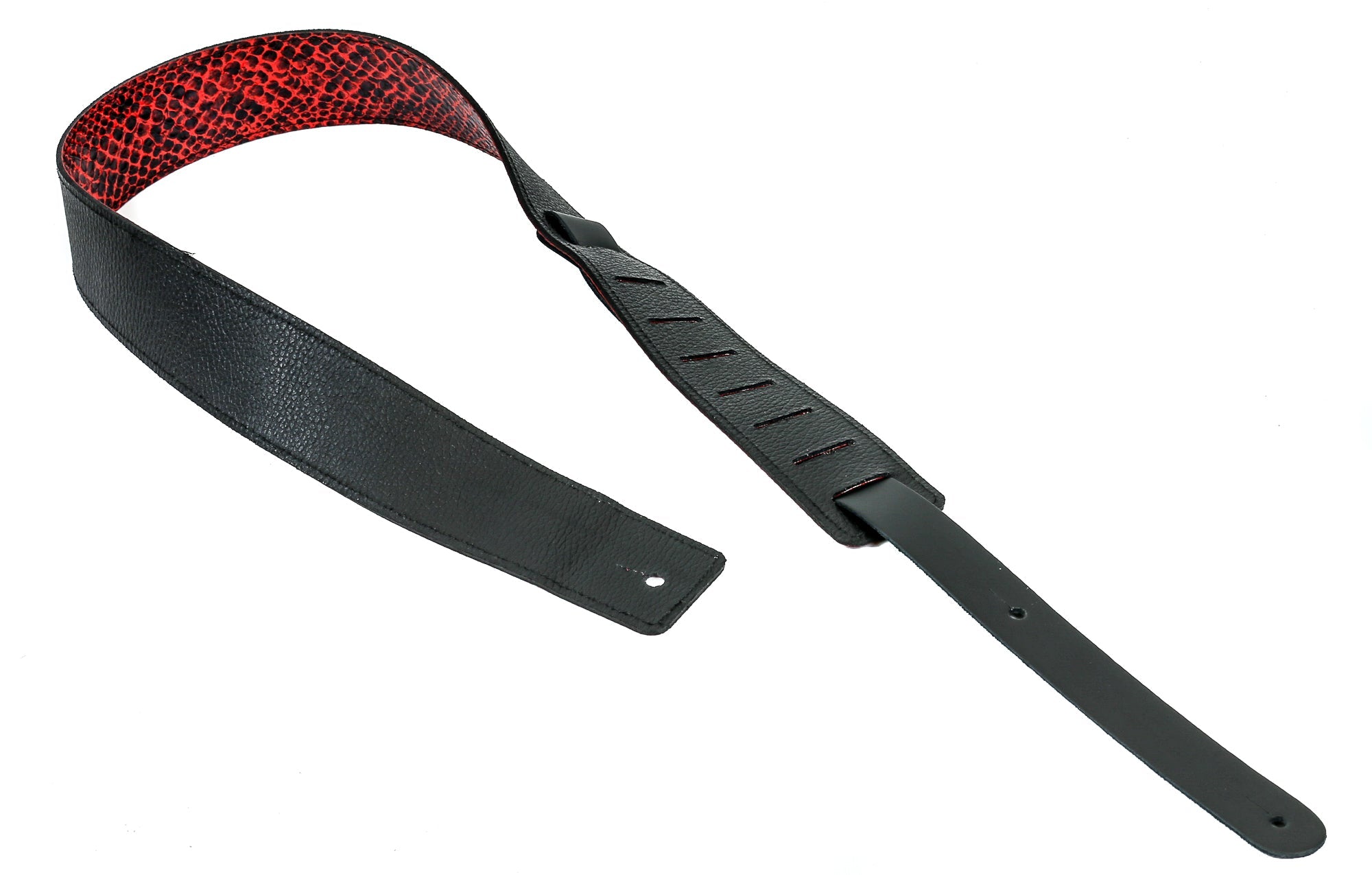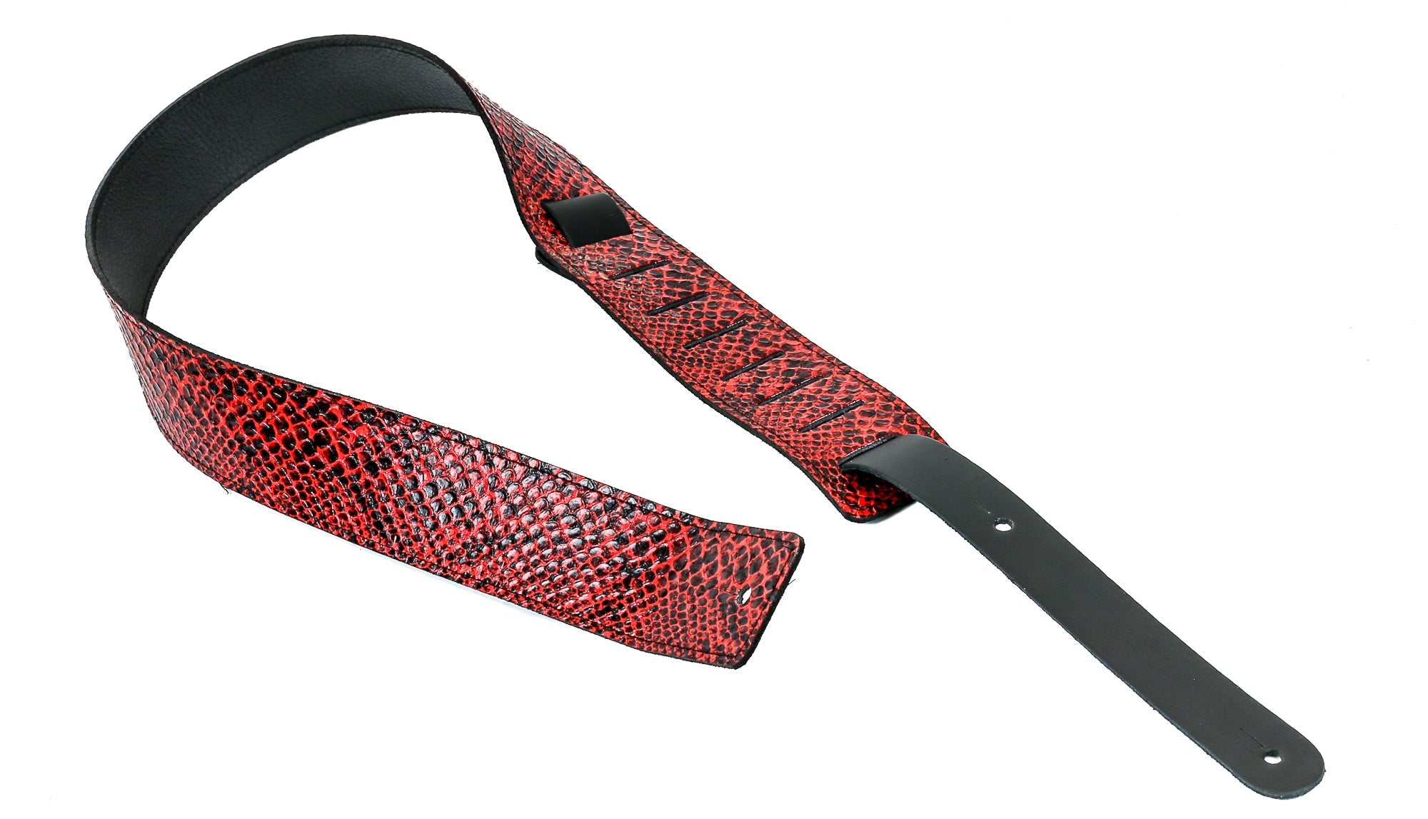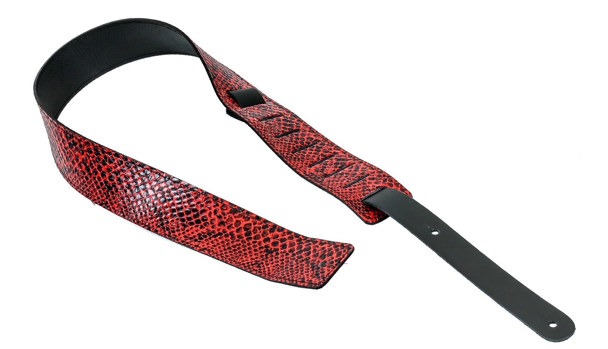 Reversible Genuine Buffalo Leather Snake Print Classic Guitar Strap Red