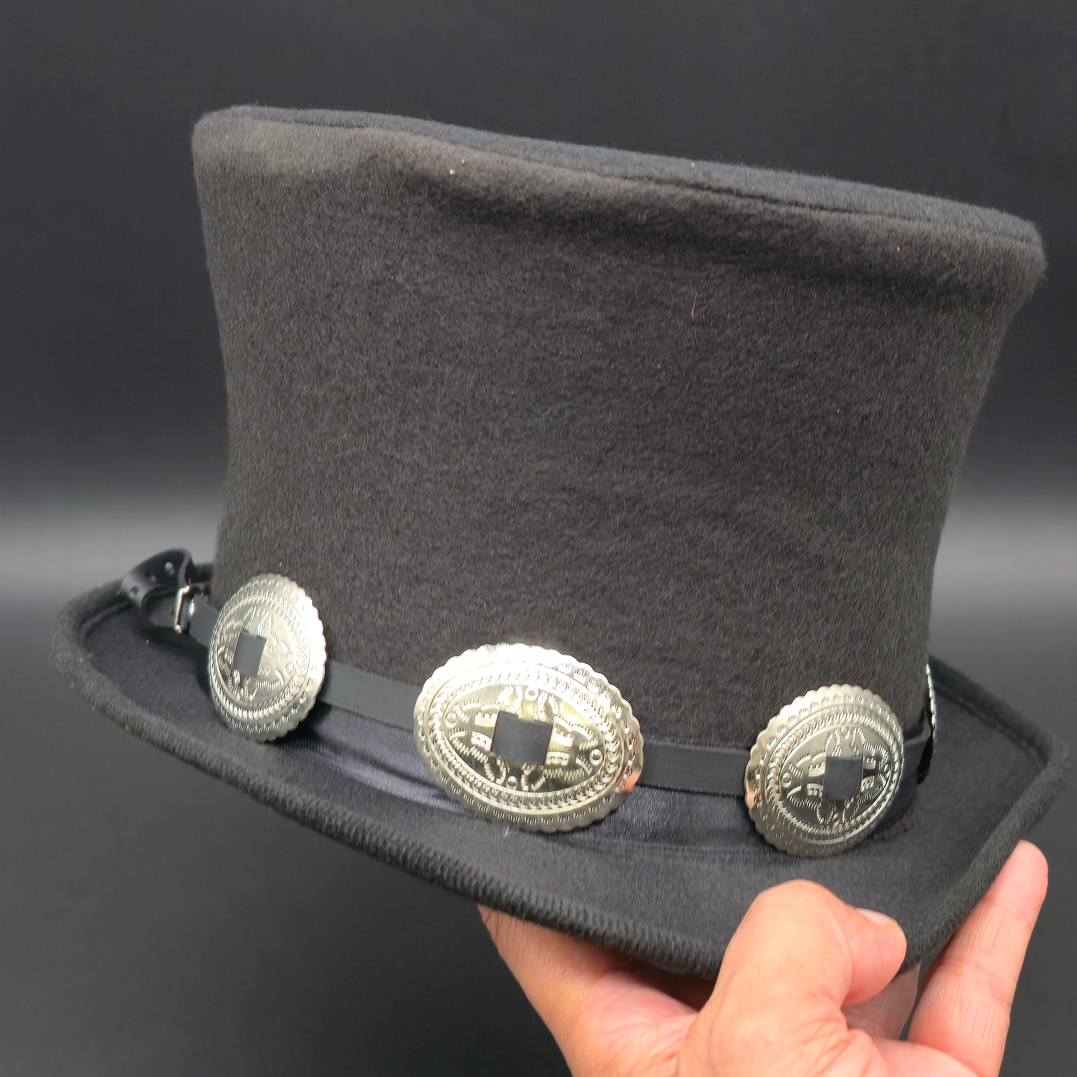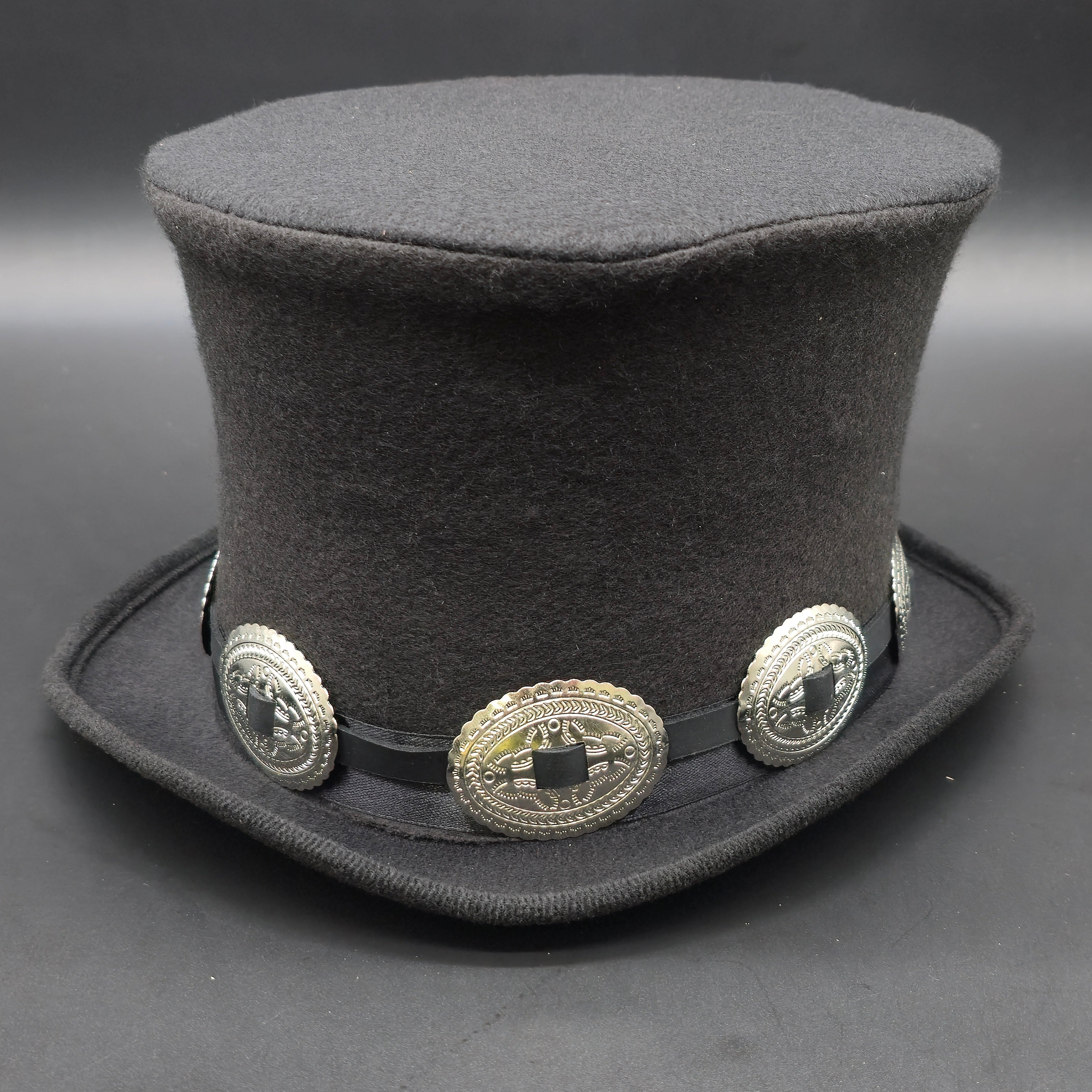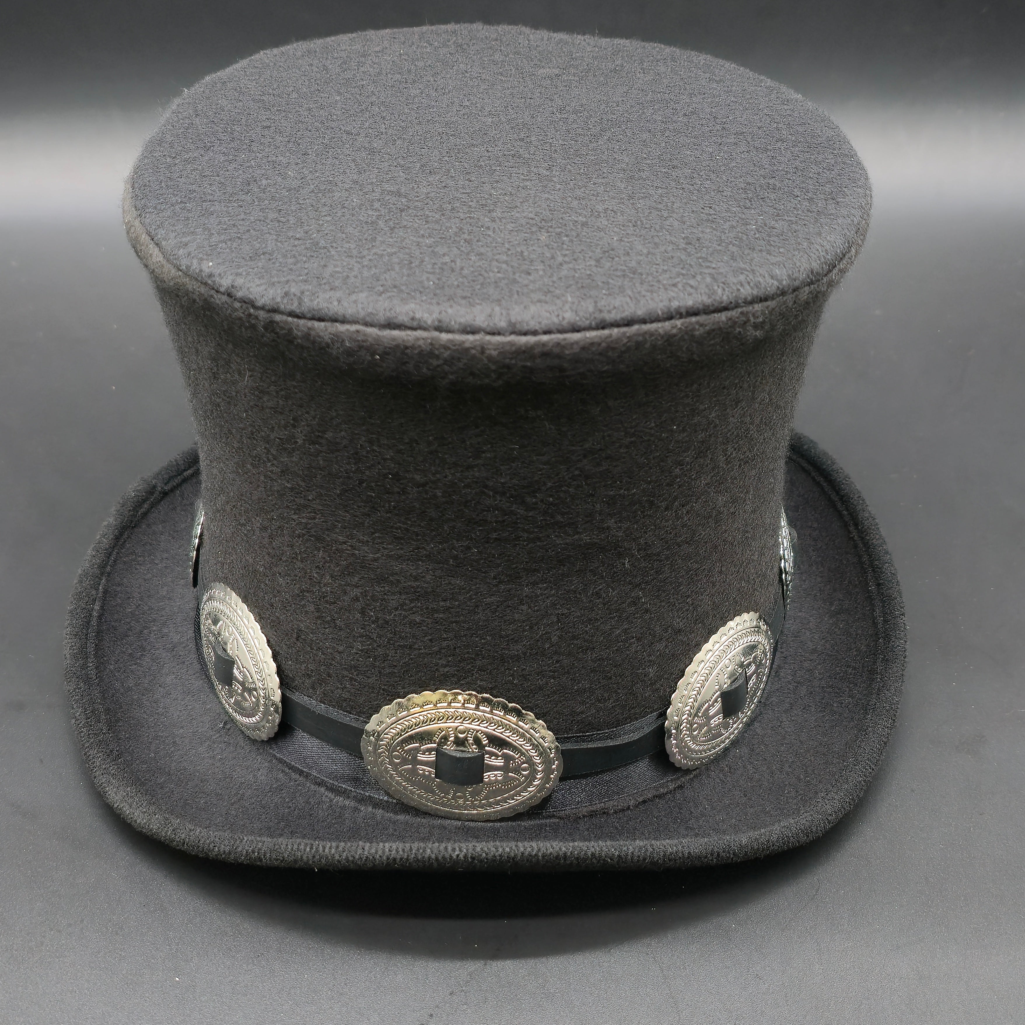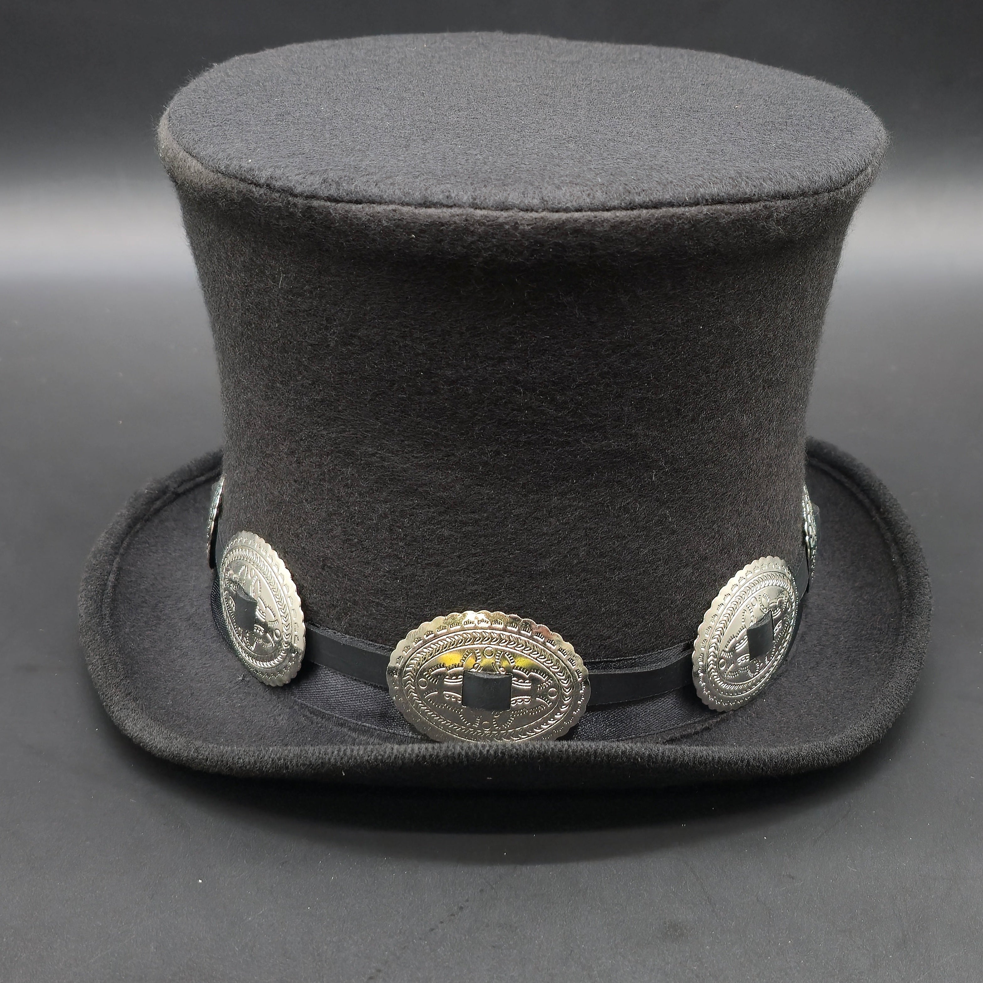 Rock Star Top Hat Concho Black Felt Victorian Mad Hatter Slash Cosplay Costume (Copy)