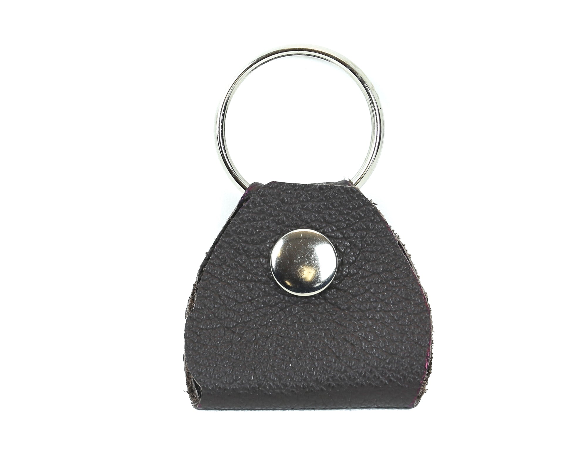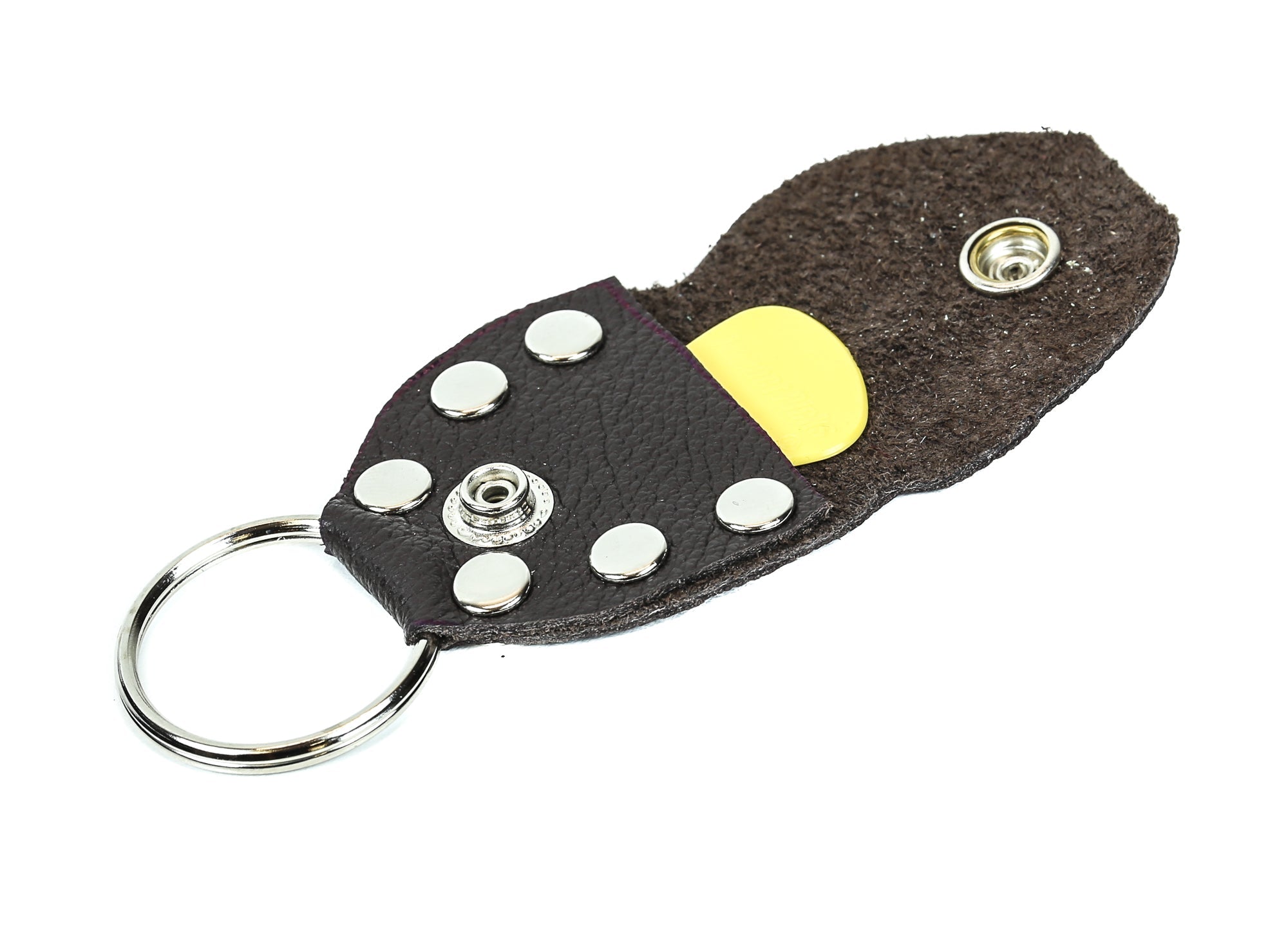 Soft Lamb Skin Leather Pick Holder Key Ring Snap Covered Brown