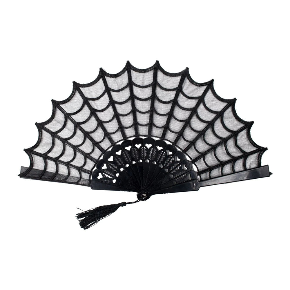 Stay ghoul with our Spiderweb Scallop Fan Pink! This stylish fabric fan features a bold poison pink spiderweb print on fabric with a spooky scallop shape. It's the perfect size to keep in your purse for those hot summer days, or to add a touch of glamour ghoul to your wall. Expands up to 16" inches (40cm) x Height 9.4" inches.