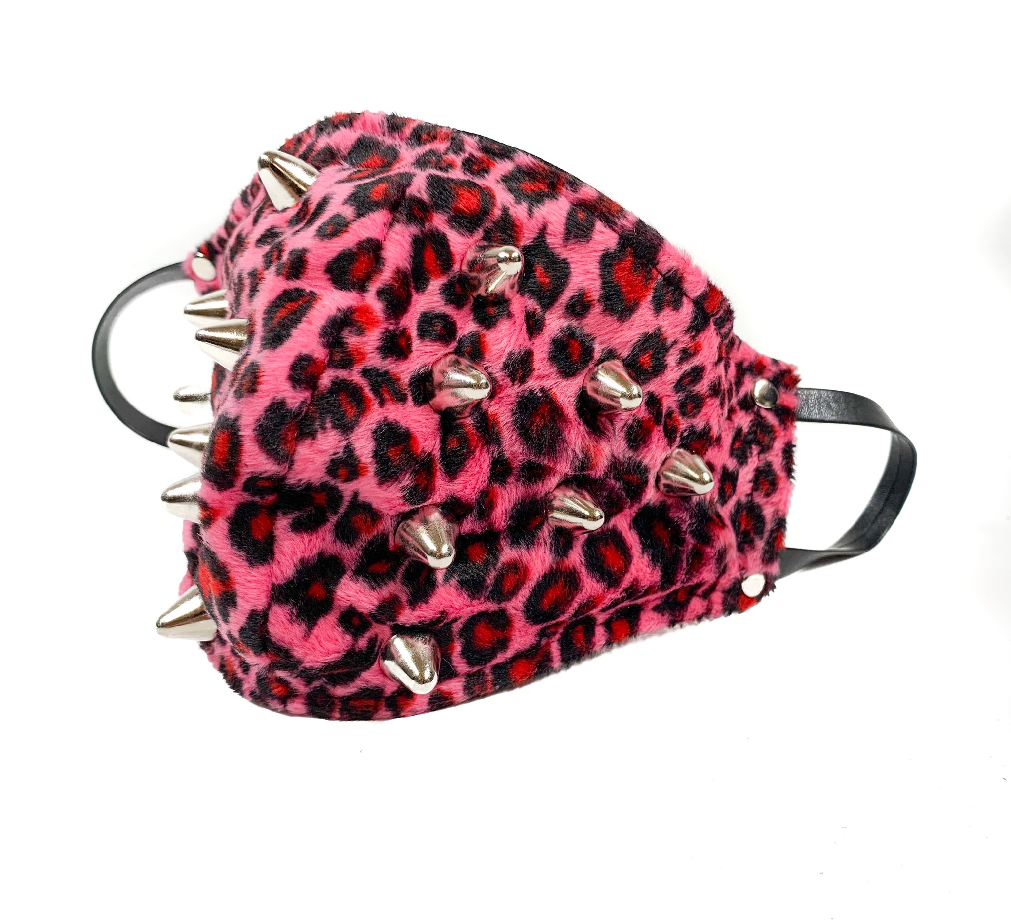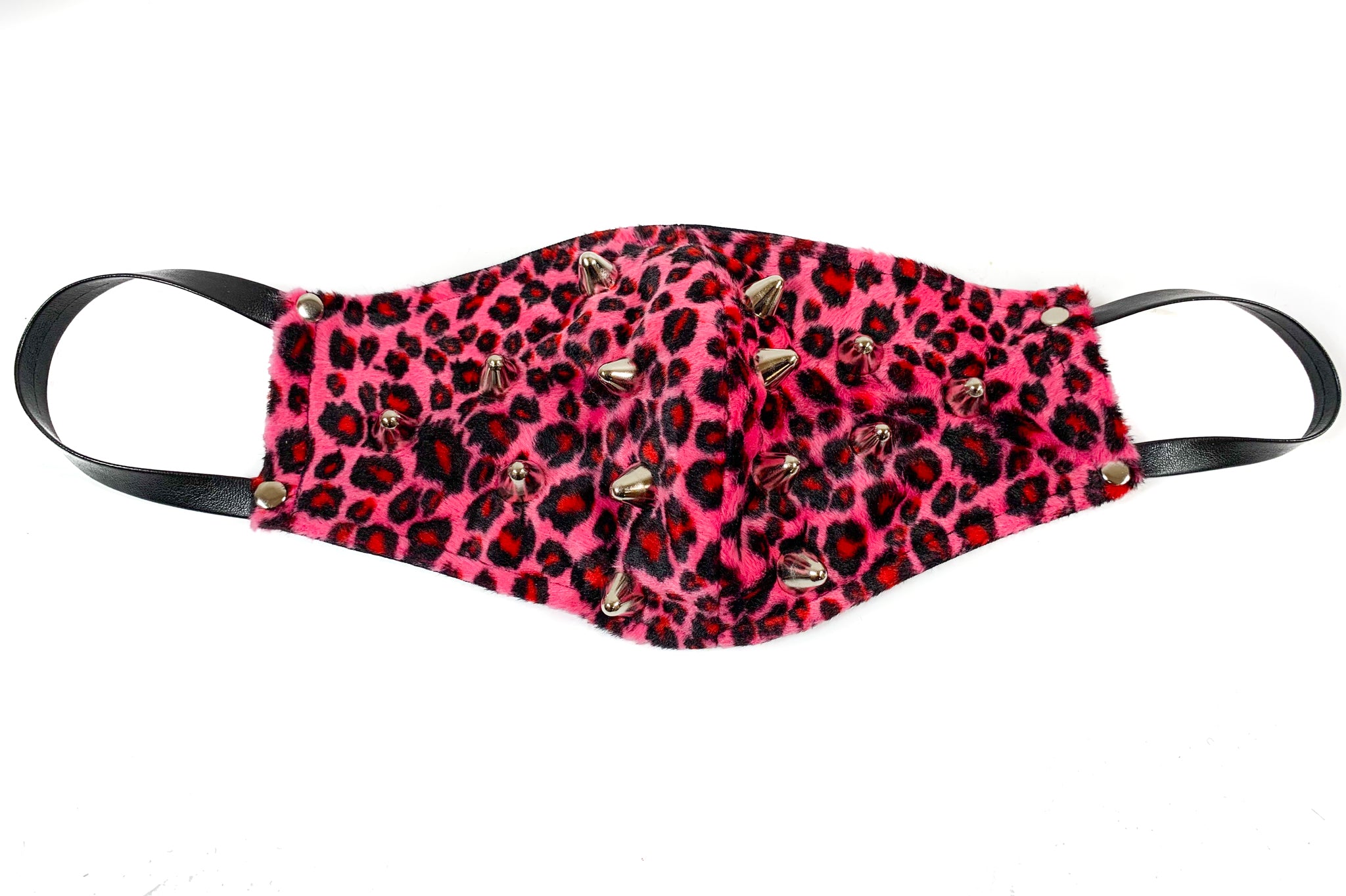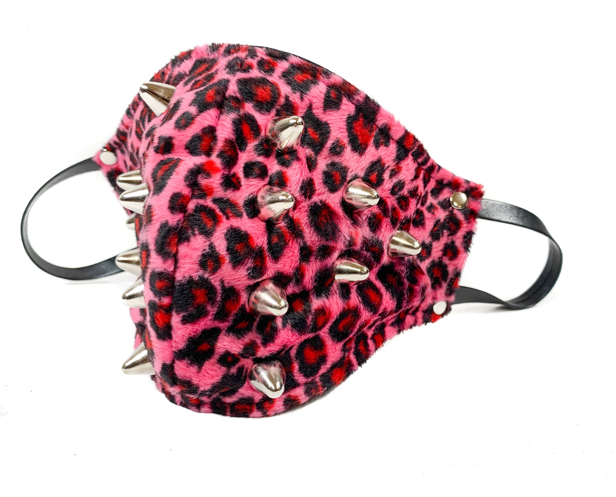 Studded Fuzzy Pink Leopard Face Mask Mouth Cover Face Cover Mask