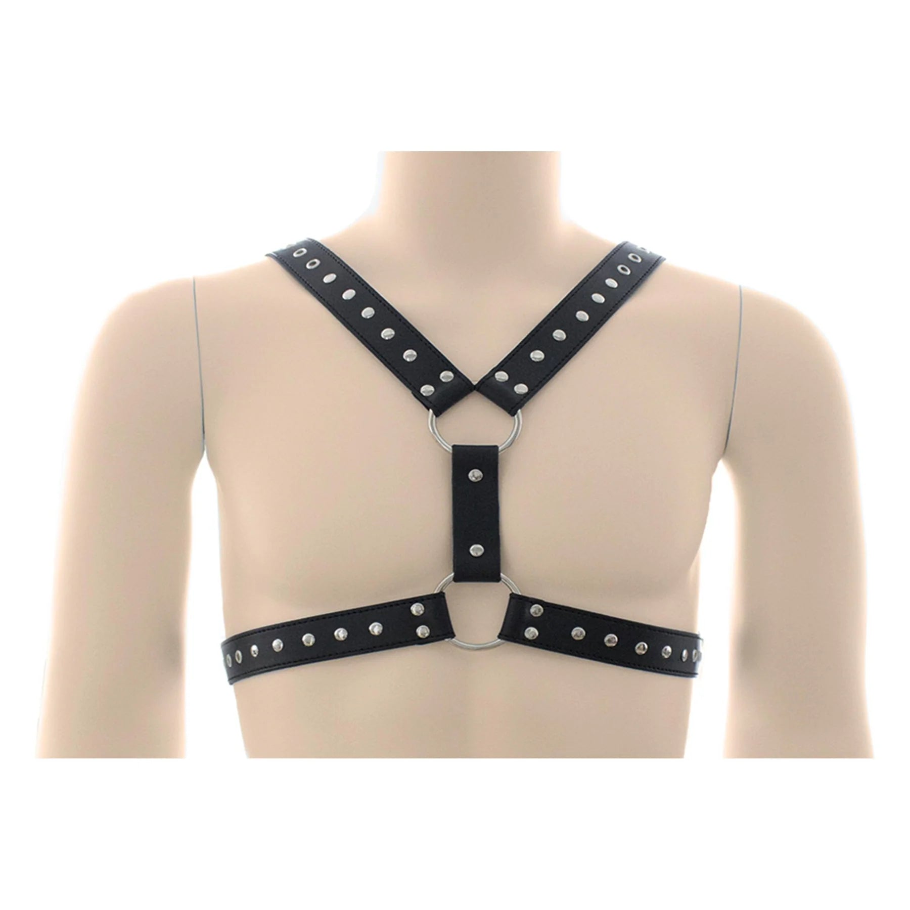 Made out of PVC vegan leather, the shoulder and chest straps are joined by a double-ringed strap that sits right between your pecs. The unique style and grommet embellishments accentuate your chest with a sexy and edgy look. You will get a perfect fit with the four fully adjustable metal back buckles, and surely turn heads wherever you go.