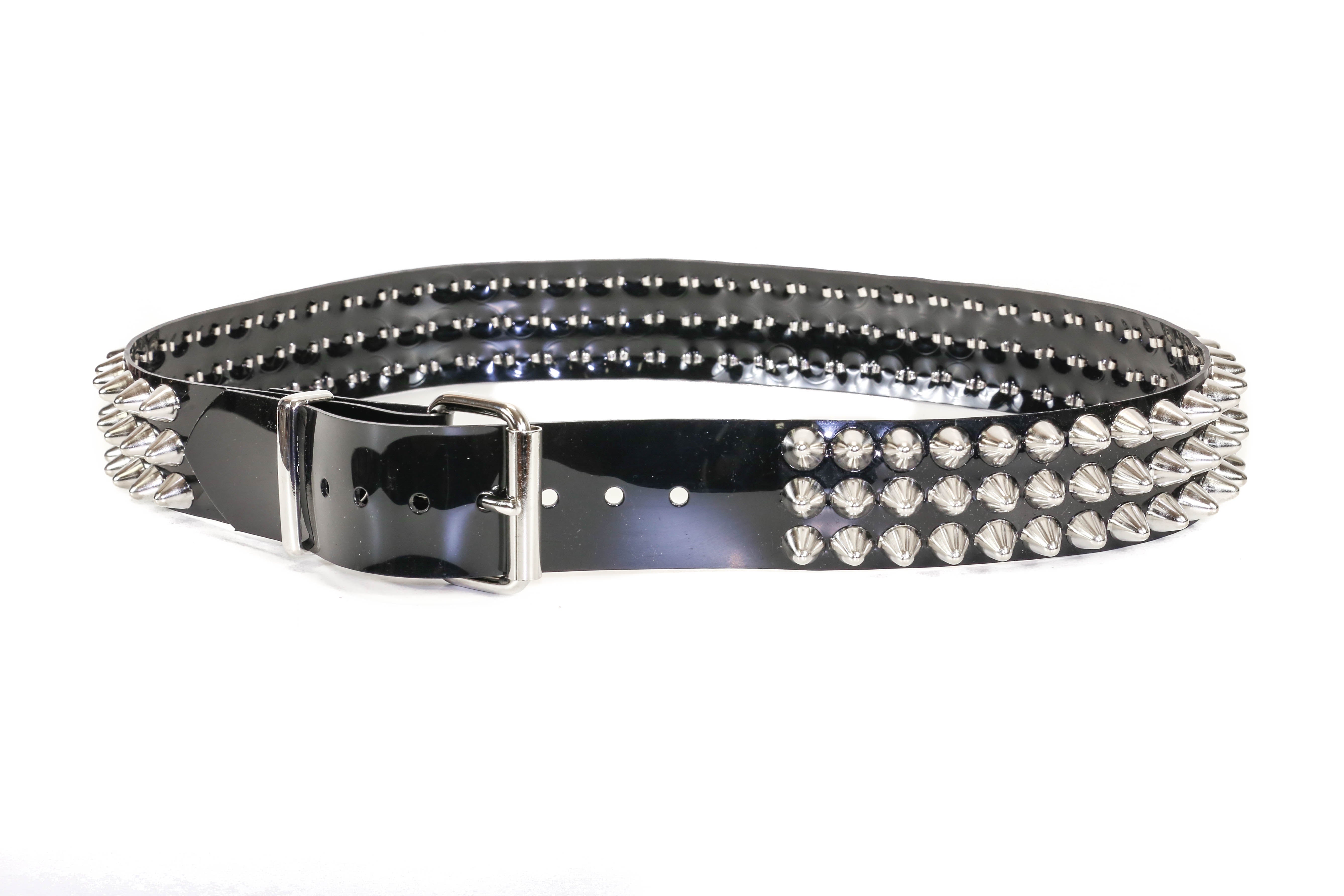 Vinyl PVC Black UK77 Conehead Stud Punk Influenced Belt By Funk Plus